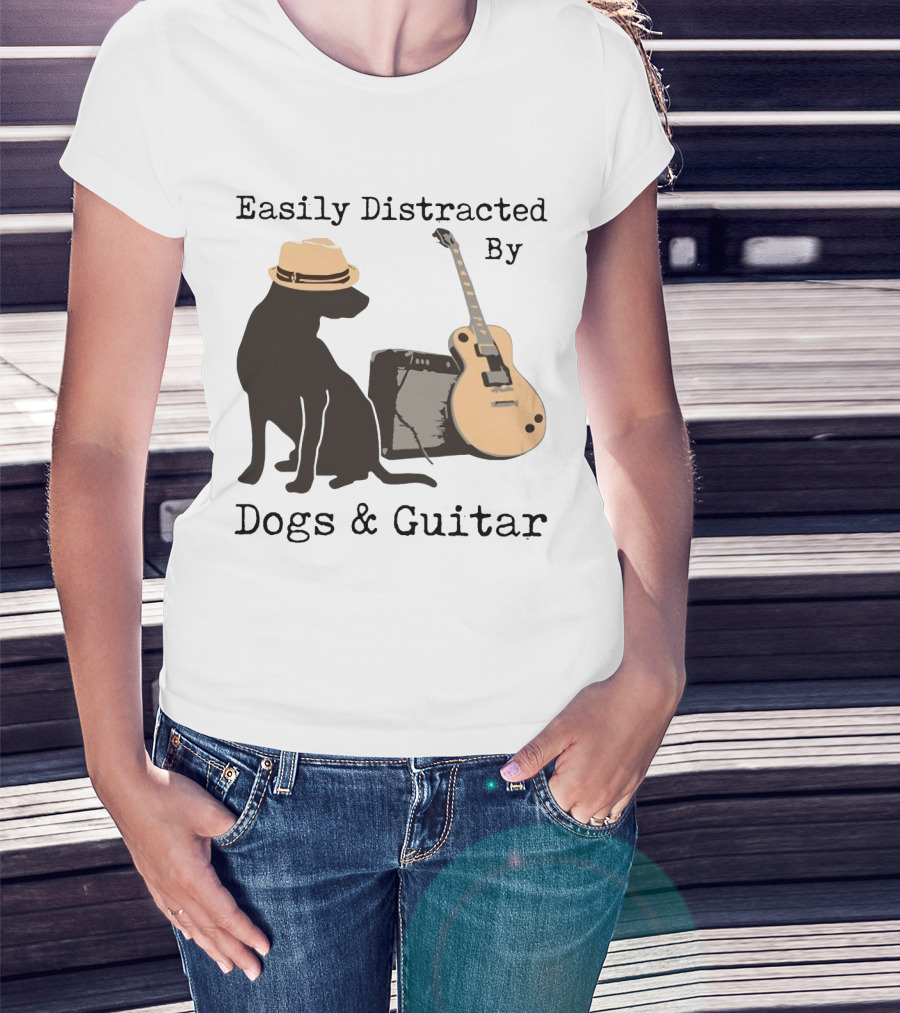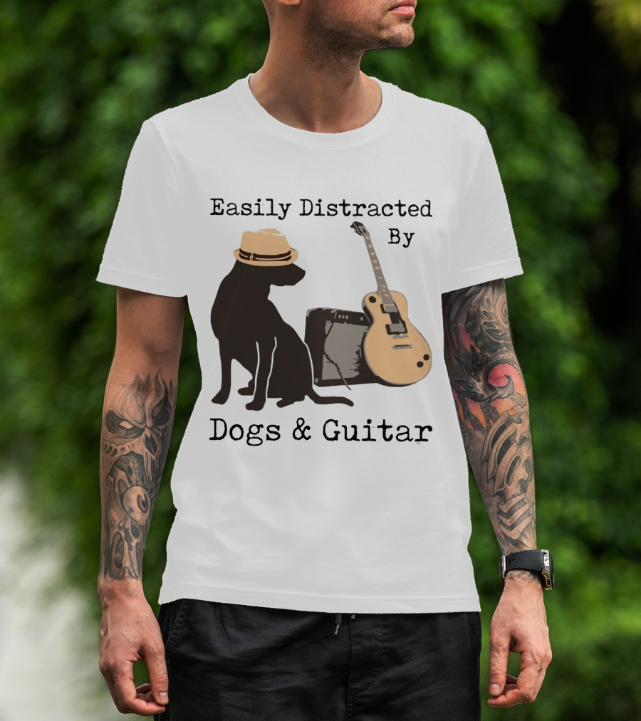 Easily Distracted By Dogs And Guitar Hat And Amplifier T-Shirt