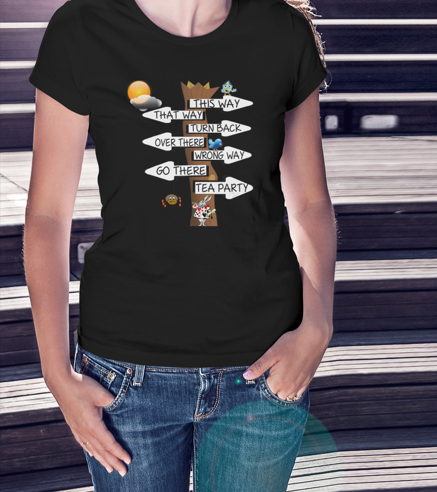 This Way That Way Turn Back Over There Wrong Way Go There Tea Party Alice In Wonderland White T-Shirt