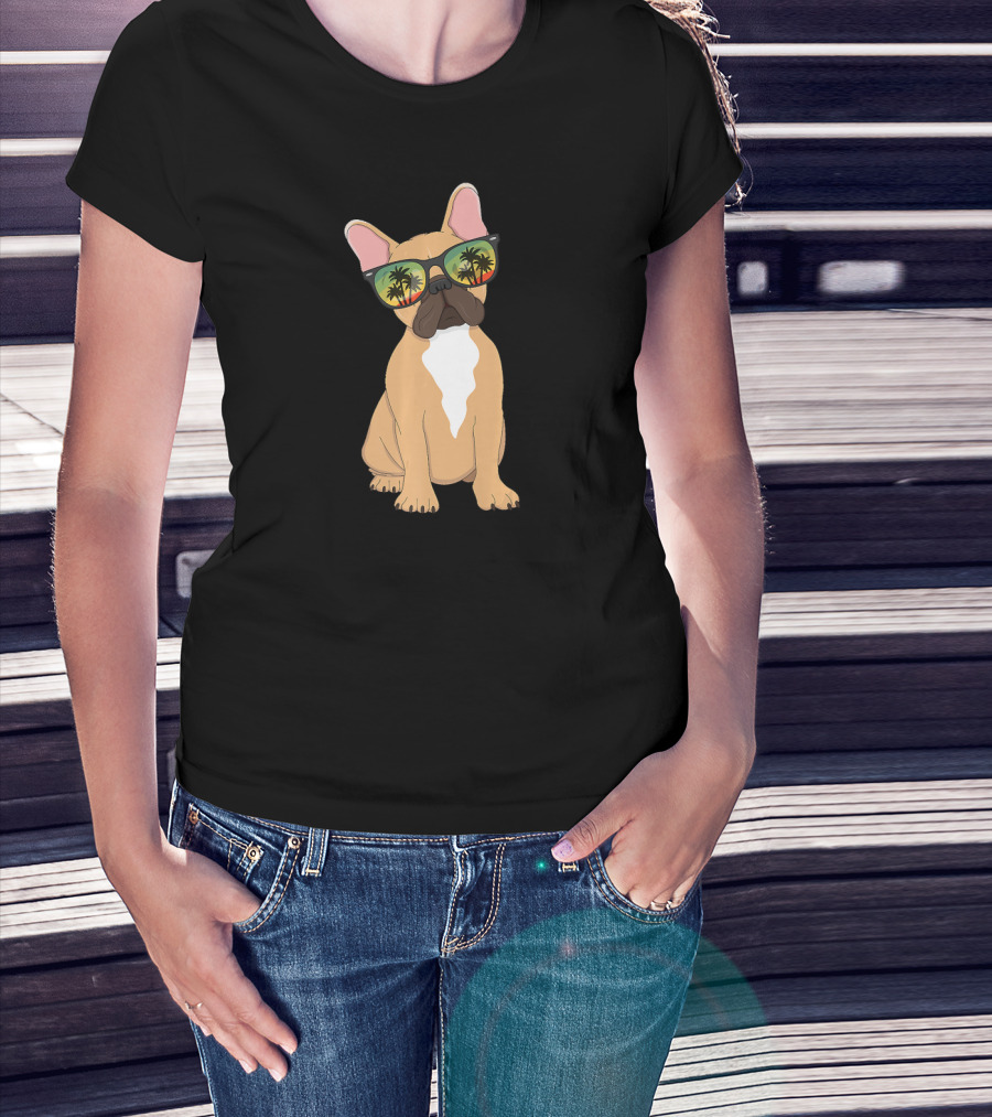 Aloha Beach French Bulldog With Vintage Sunglasses And Palm Trees T-Shirt