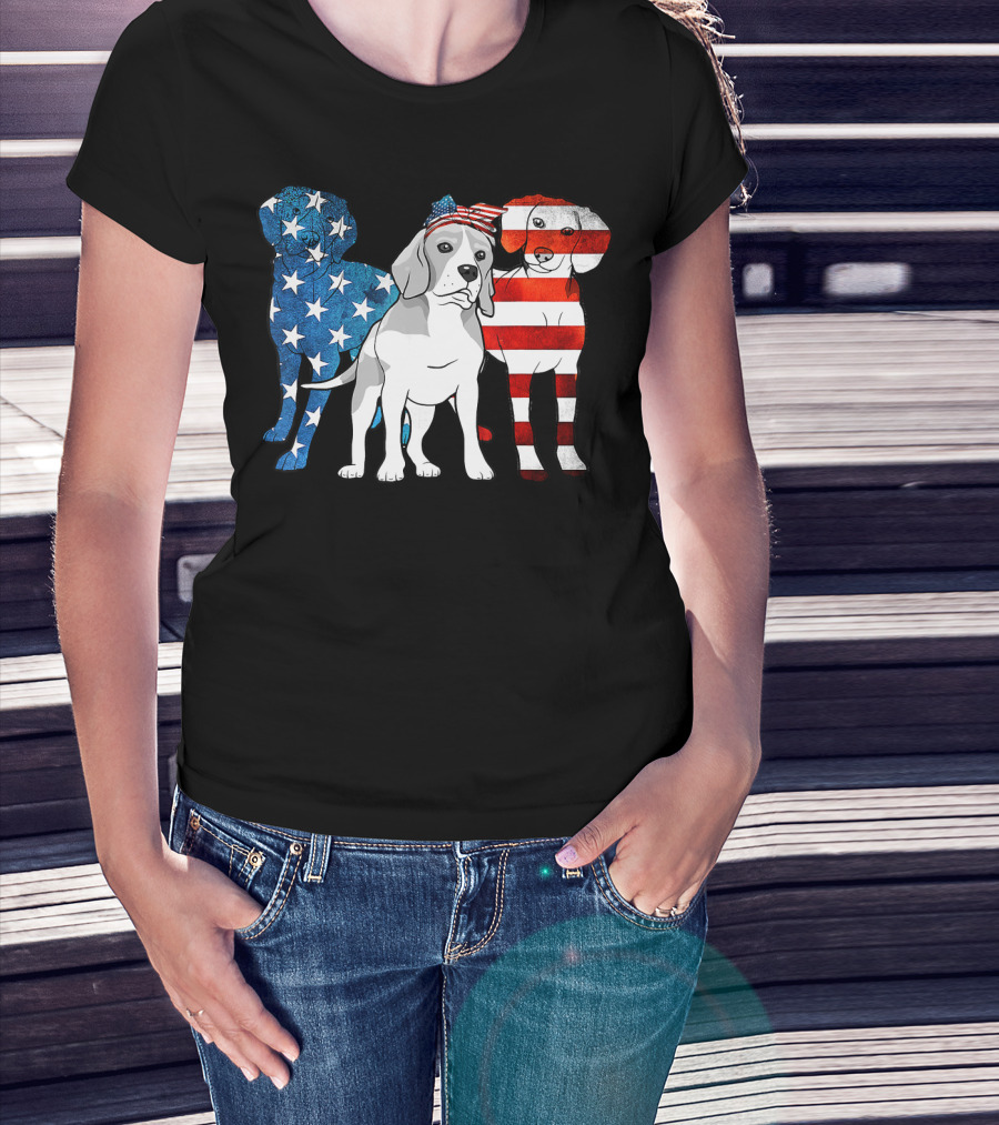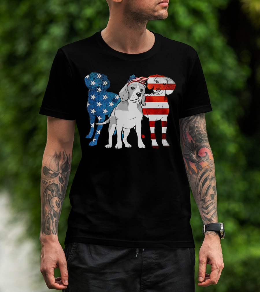 American Beagle Trio With Patriotic Stars And Stripes US Flag Motif T-Shirt