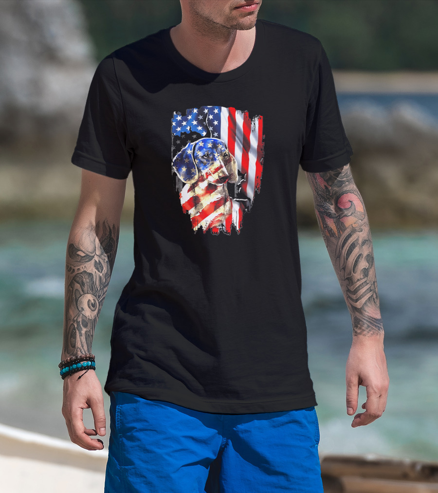 The American Flag Dachshund USA T-shirt is designed for everyday wear and a consistent fit. Fabric is pre-shrunk ring-spun cotton with durable stitching. See the size chart below for exact measurements.