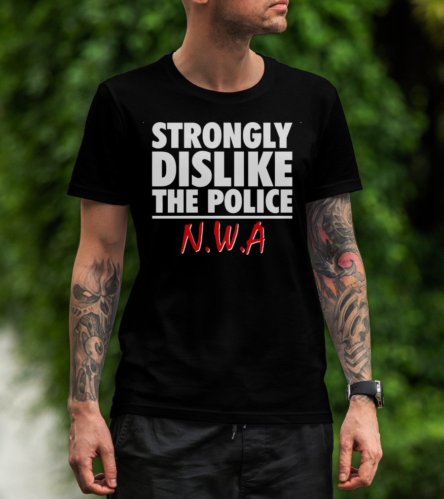 The Strongly Dislike The Police N.W.A T-shirt is designed for everyday wear and a consistent fit. Fabric is pre-shrunk ring-spun cotton with durable stitching. See the size chart below for exact measurements.