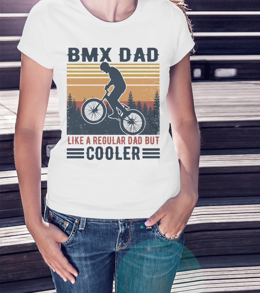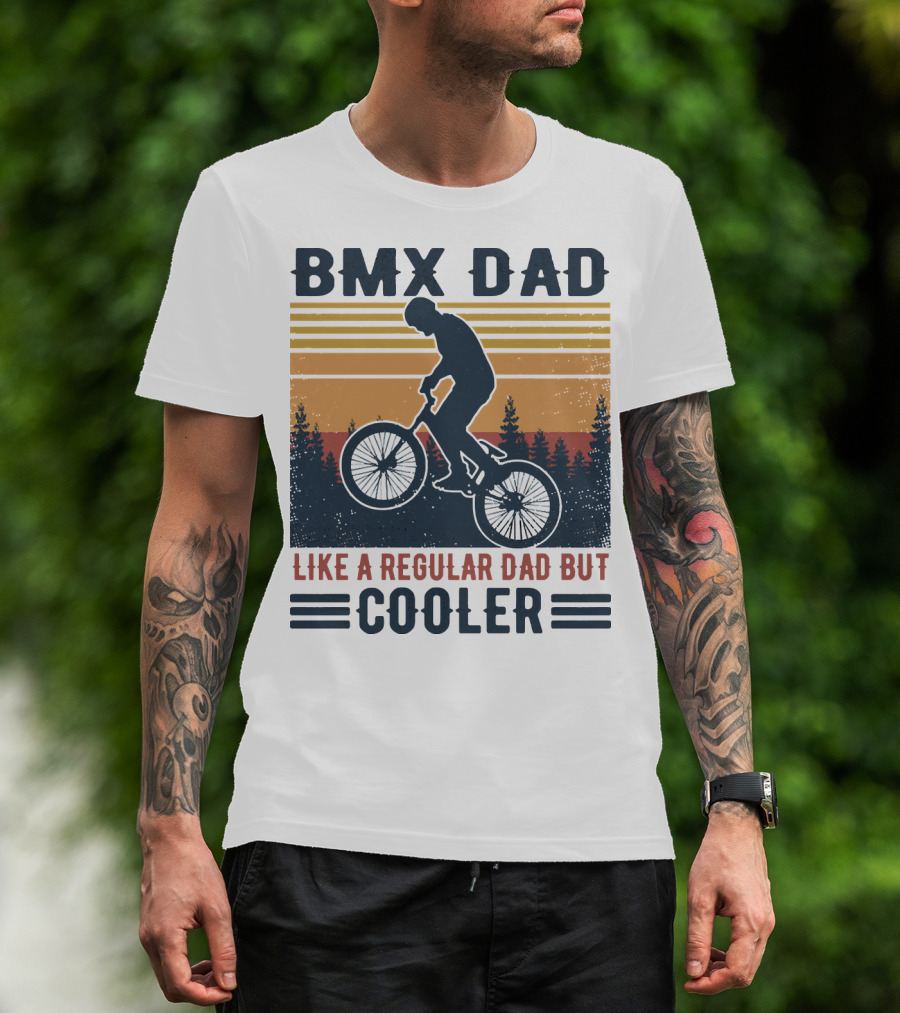 The BMX Dad Like a Regular Dad But Cooler Retro Forest T-shirt is designed for everyday wear and a consistent fit. Fabric is pre-shrunk ring-spun cotton with durable stitching. See the size chart below for exact measurements.