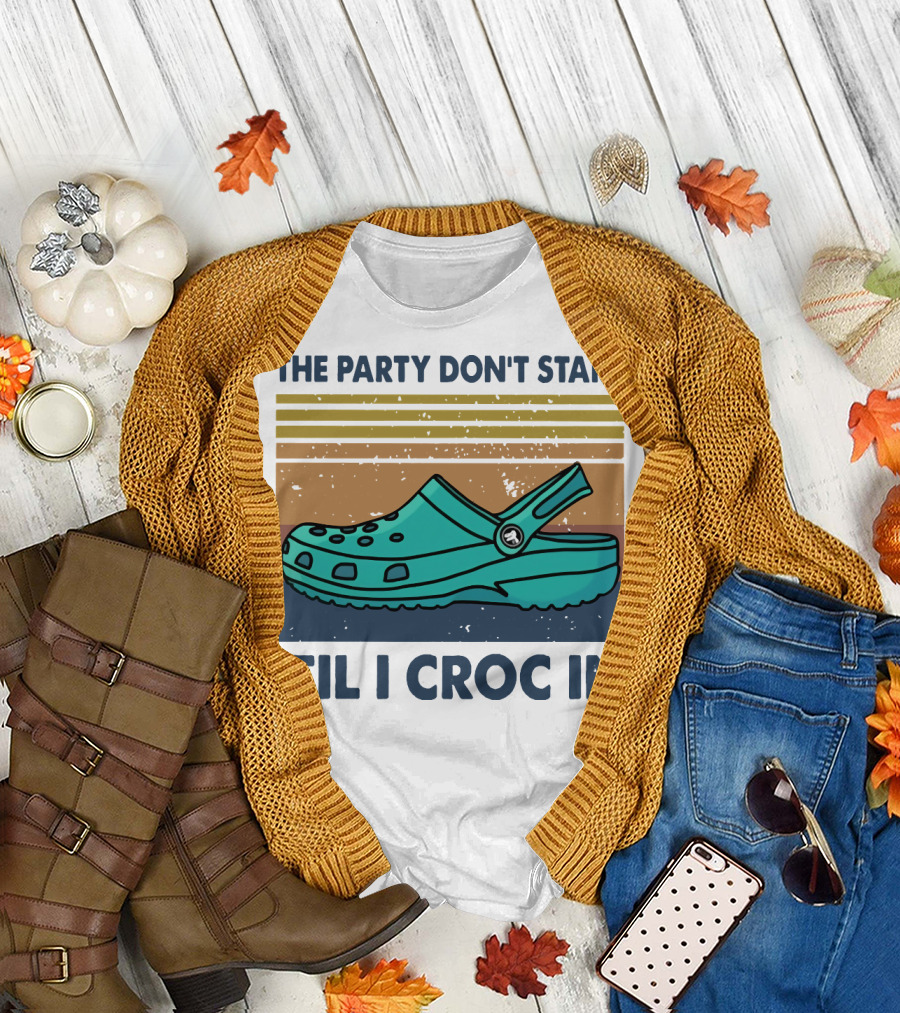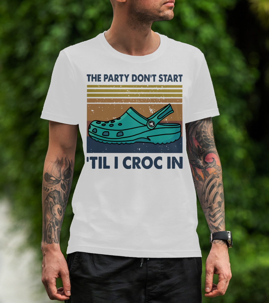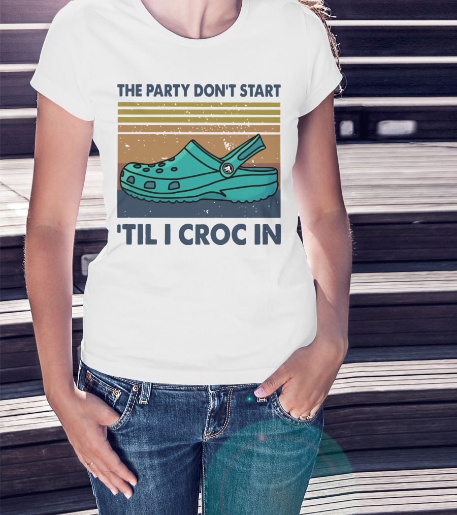 The Party Don't Start 'Til I Croc In Retro Stripes Crocs T-Shirt