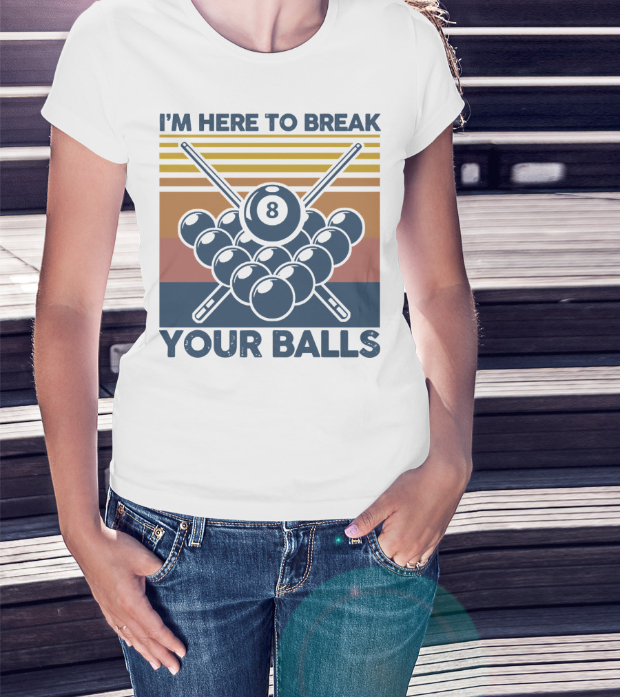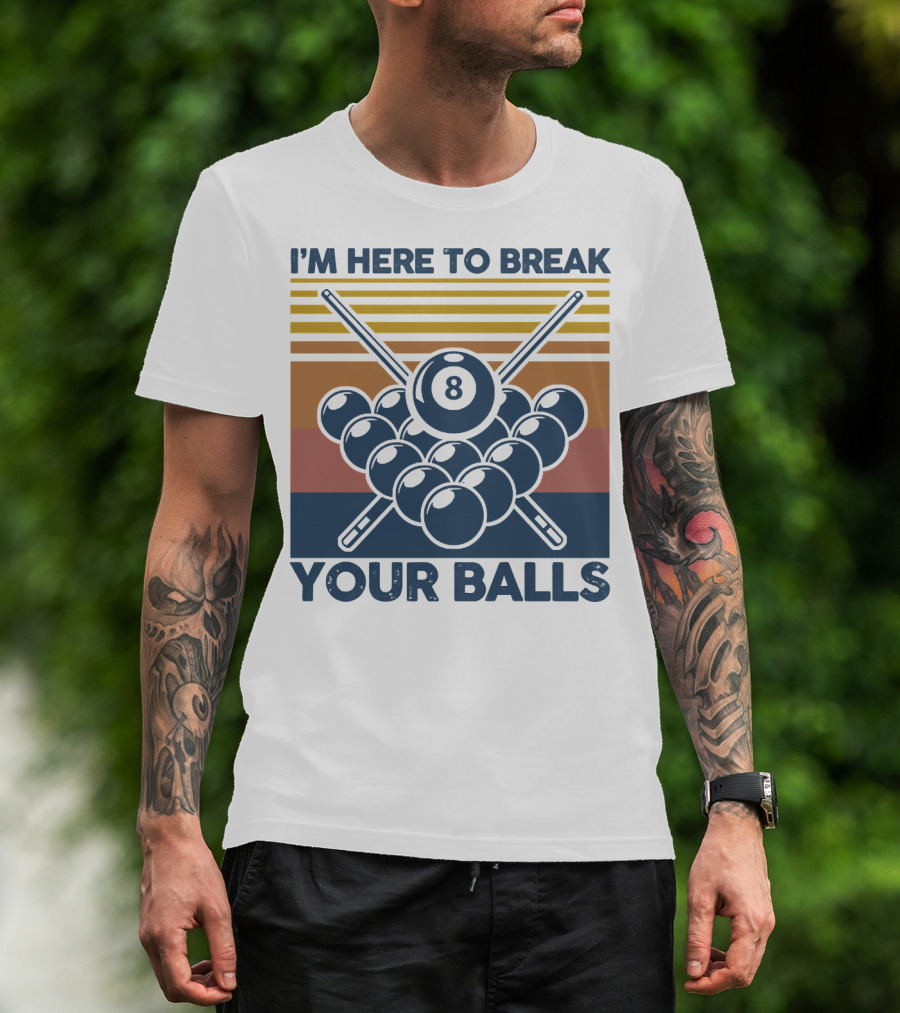 I'm Here To Break Your Balls Billiard Retro 8 Ball Cue Sticks T-Shirt