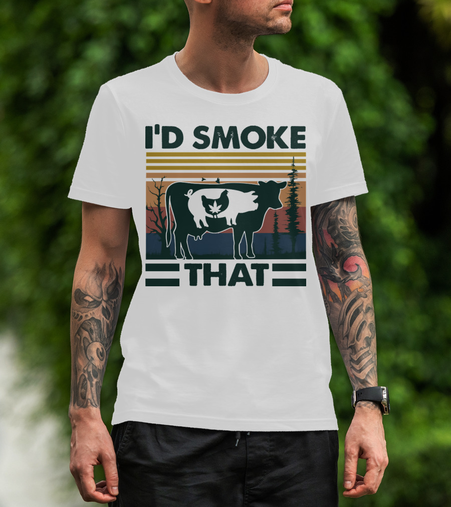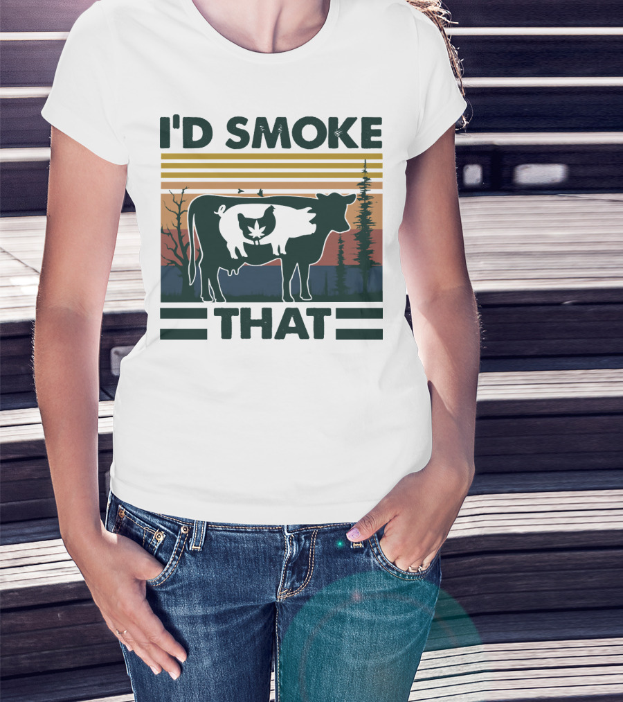I'd Smoke That Vintage Farm Pig Cow Sunset T-Shirt