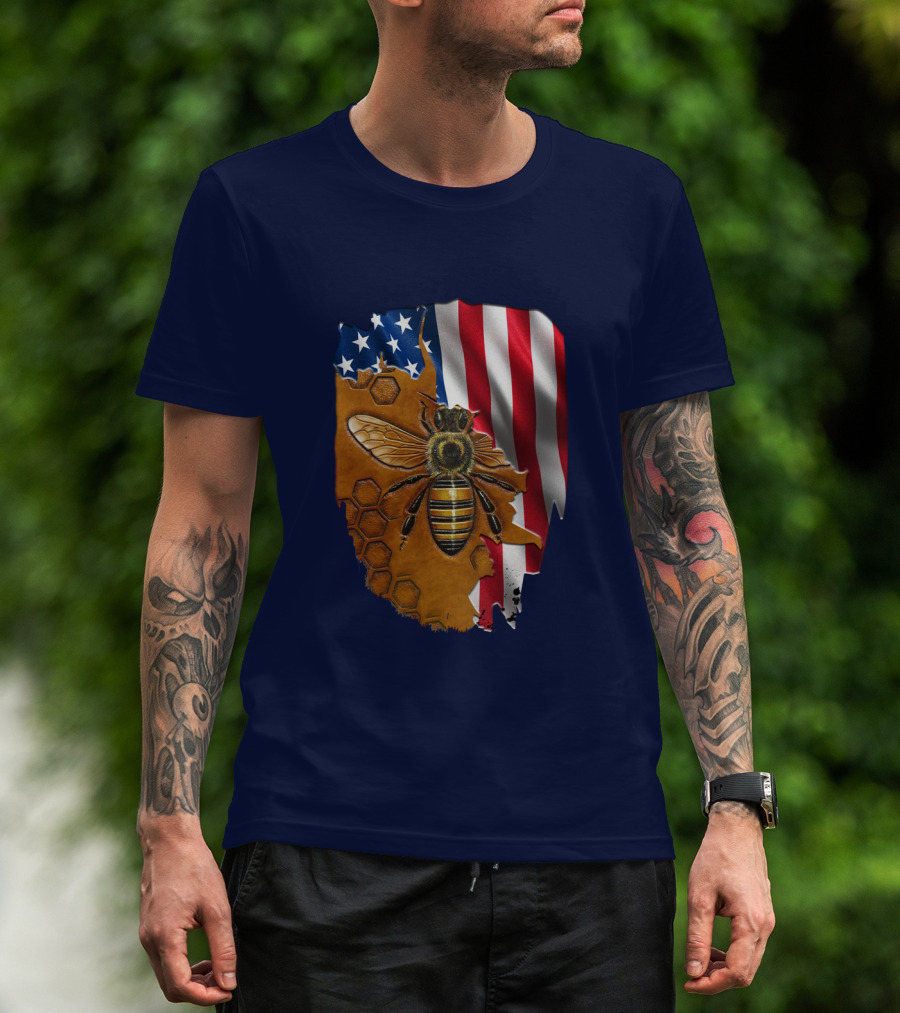 Beautifull Bee American Flag Honeycomb T-Shirt