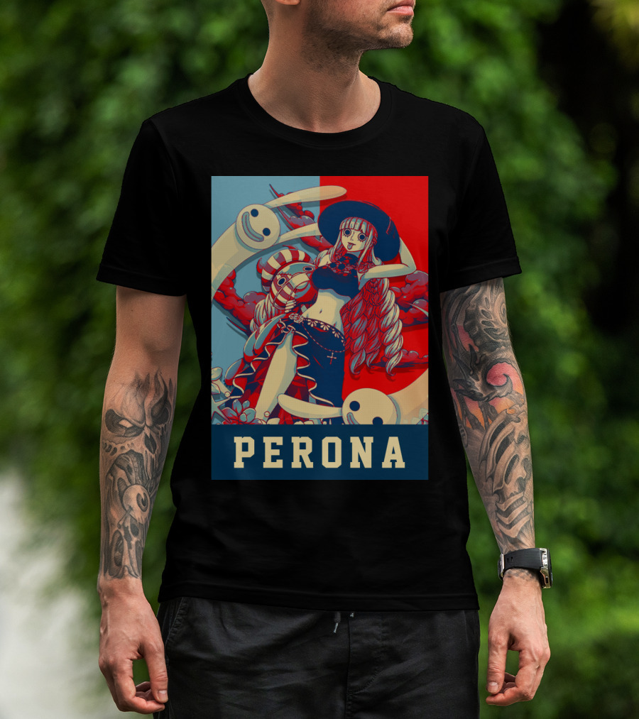 Perona One Piece Manga Anime Character With Ghosts And Red Blue Split Background T-Shirt
