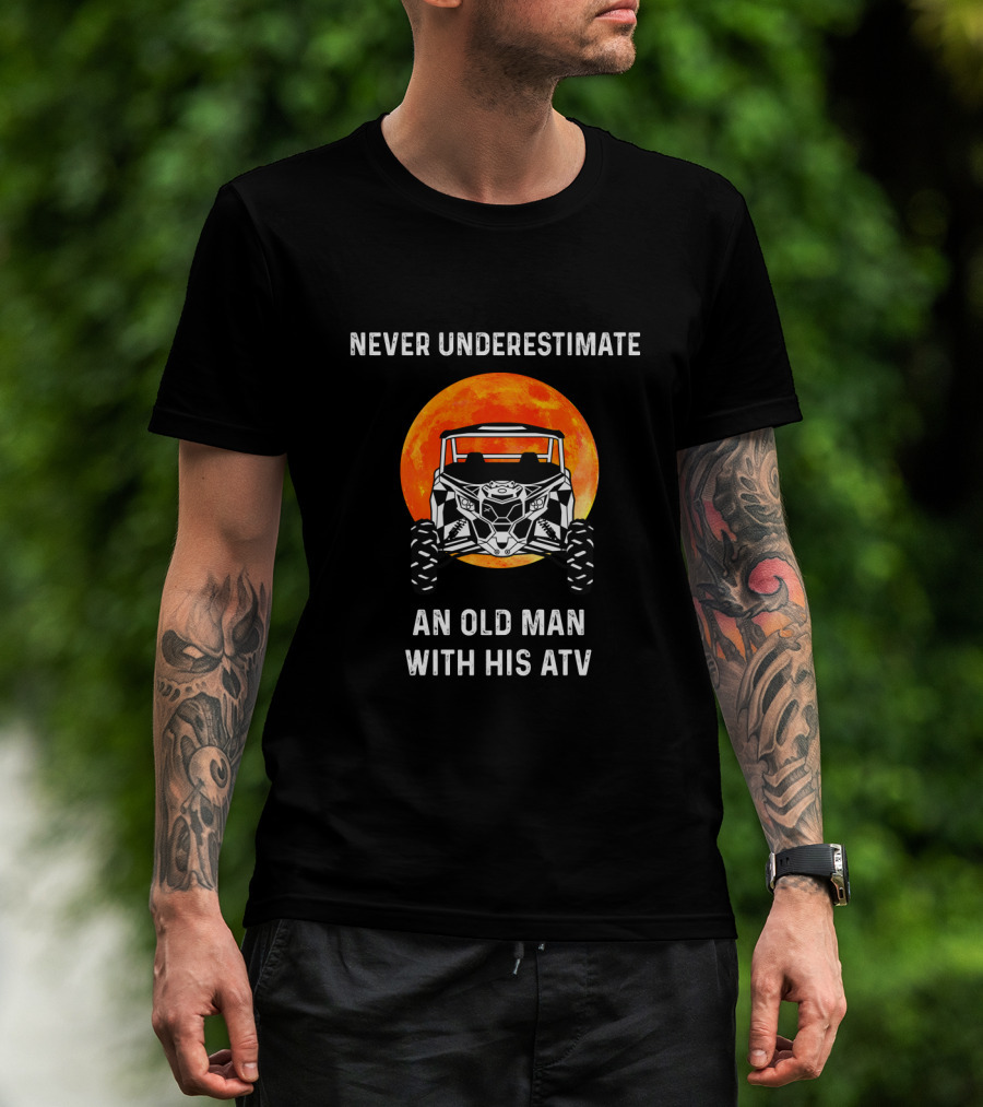 NEVER UNDERESTIMATE AN OLD MAN WITH HIS ATV MOON BACKGROUND T-Shirt