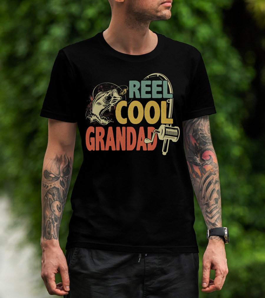 Reel Cool Grandad Vintage Fishing Motif T-Shirt