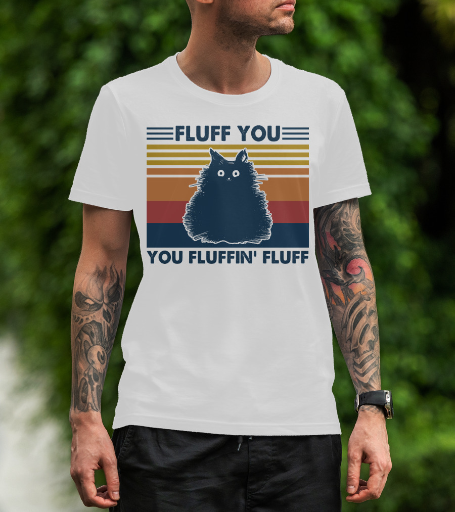 The Fluff You You Fluffin' Fluff Retro Cat Vintage Stripes T-shirt is designed for everyday wear and a consistent fit. Fabric is pre-shrunk ring-spun cotton with durable stitching. See the size chart below for exact measurements.