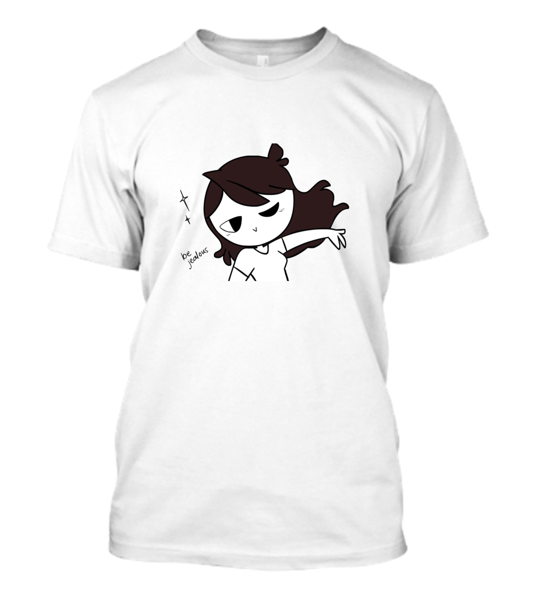 The Jaiden Animations Be Jealous T-shirt is designed for everyday wear and a consistent fit. Fabric is pre-shrunk ring-spun cotton with durable stitching. See the size chart below for exact measurements.