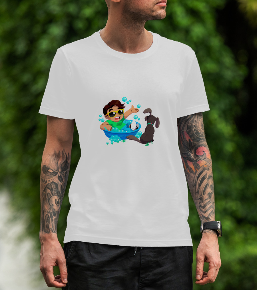 The Guava Juice Fun Pool Adventure with Dog and Bubbles T-shirt is designed for everyday wear and a consistent fit. Fabric is pre-shrunk ring-spun cotton with durable stitching. See the size chart below for exact measurements.