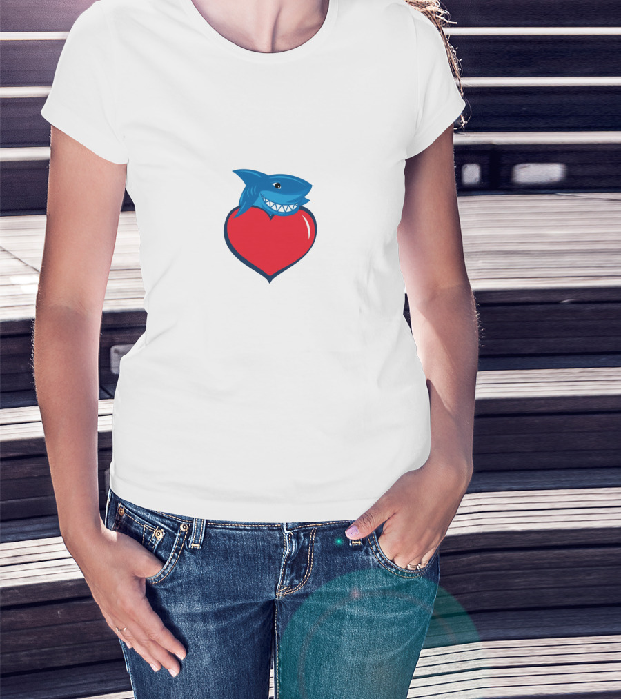 Cringe Fam Blue Shark With Red Heart T-Shirt