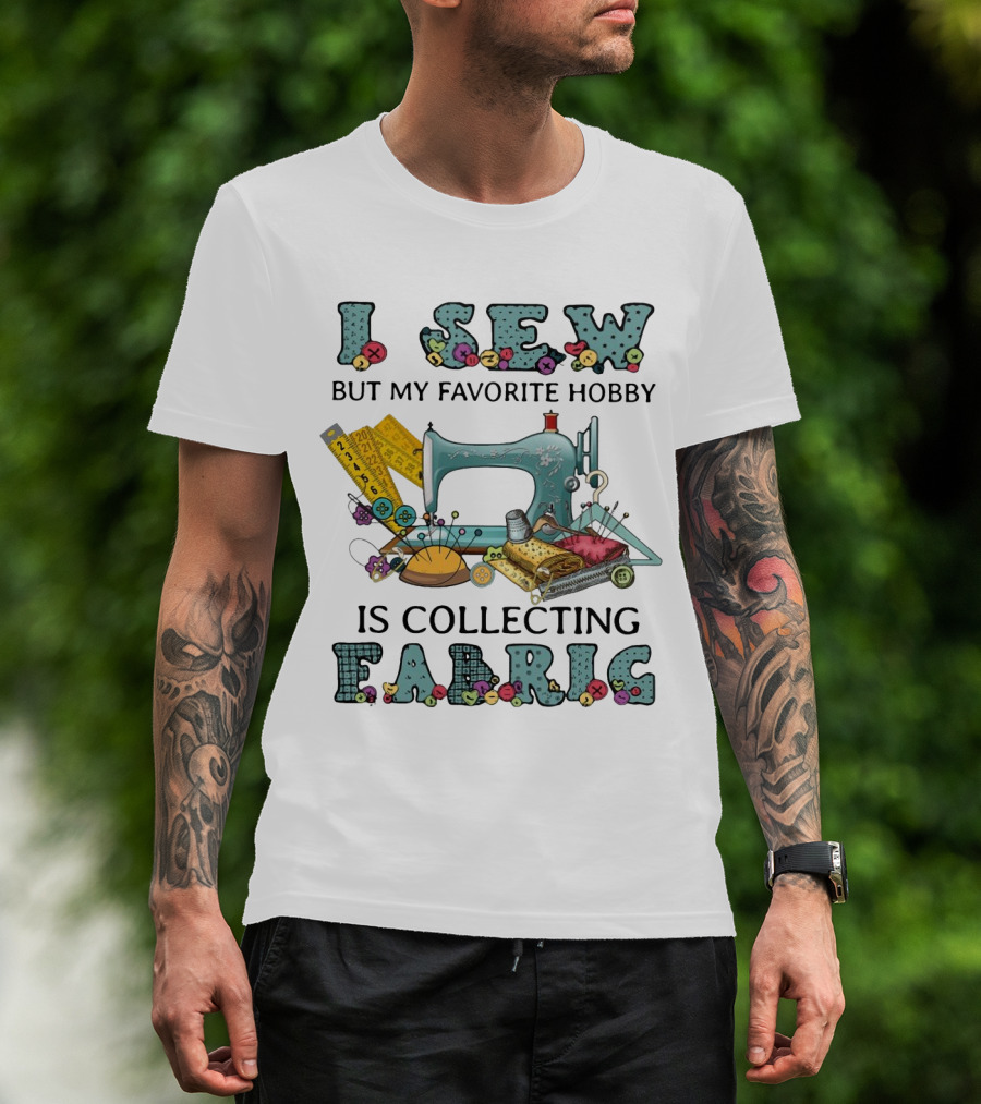 I Sew But My Favorite Hobby Is Collecting Fabric Sewing Machine Buttons Rulers Threads Needles T-Shirt