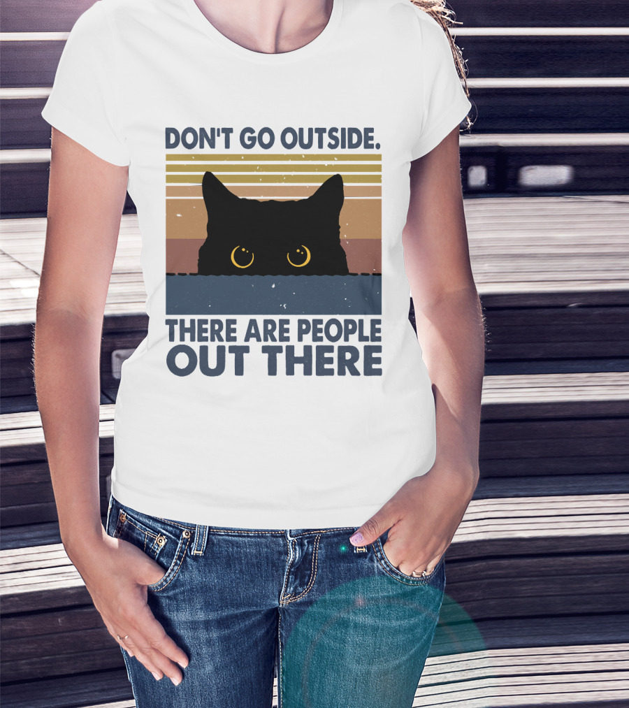 Don't Go Outside There Are People Out There Cat T-Shirt