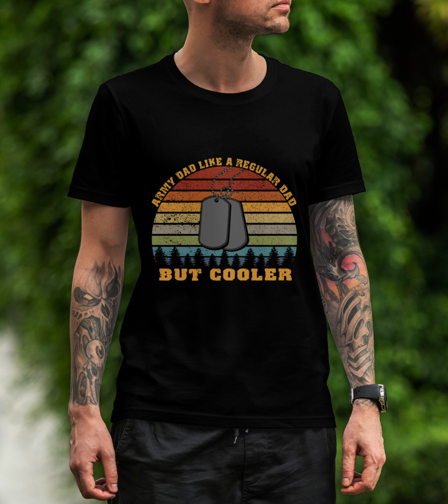 Army Dad Like A Regular Dad But Cooler With Dog Tags And Retro Stripes T-Shirt