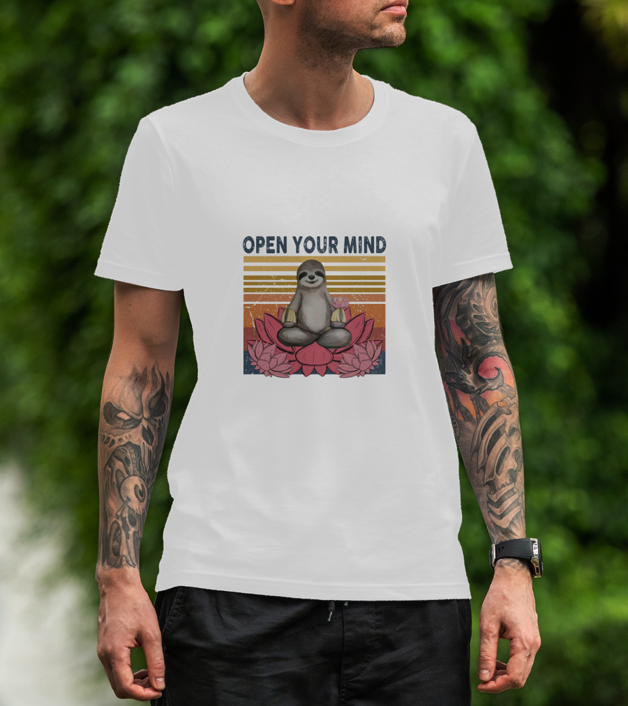 Open Your Mind Yoga Sloth On Lotus With Retro Stripes T-Shirt