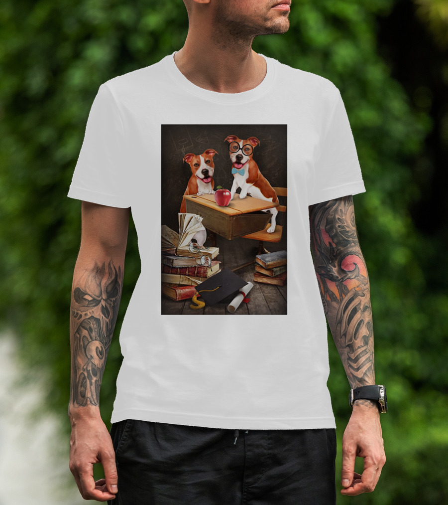 Pitbull Teacher Dogs With Books And Graduation Cap T-Shirt
