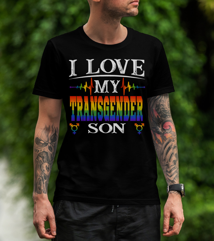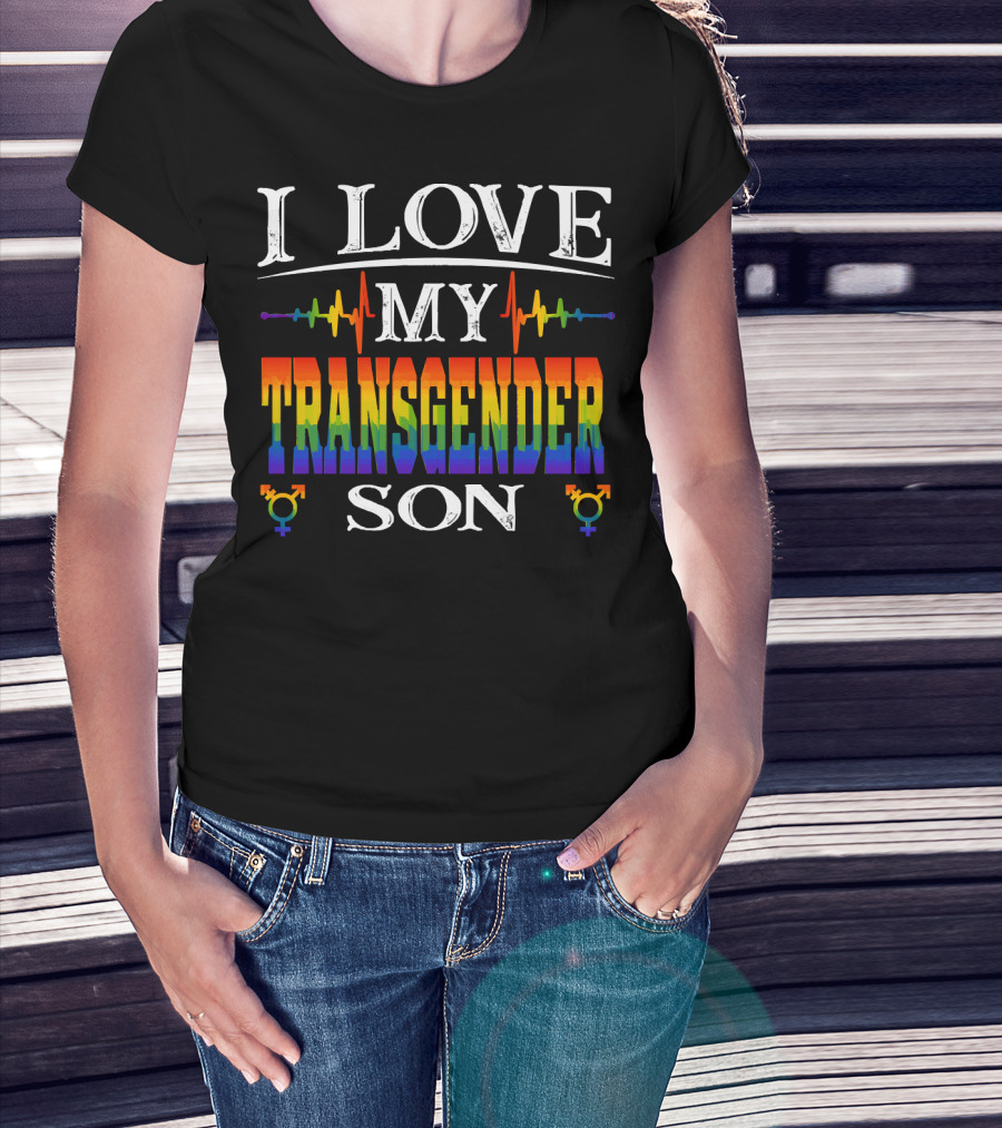 I Love My Transgender Son Rainbow Pride Heartbeat T-Shirt