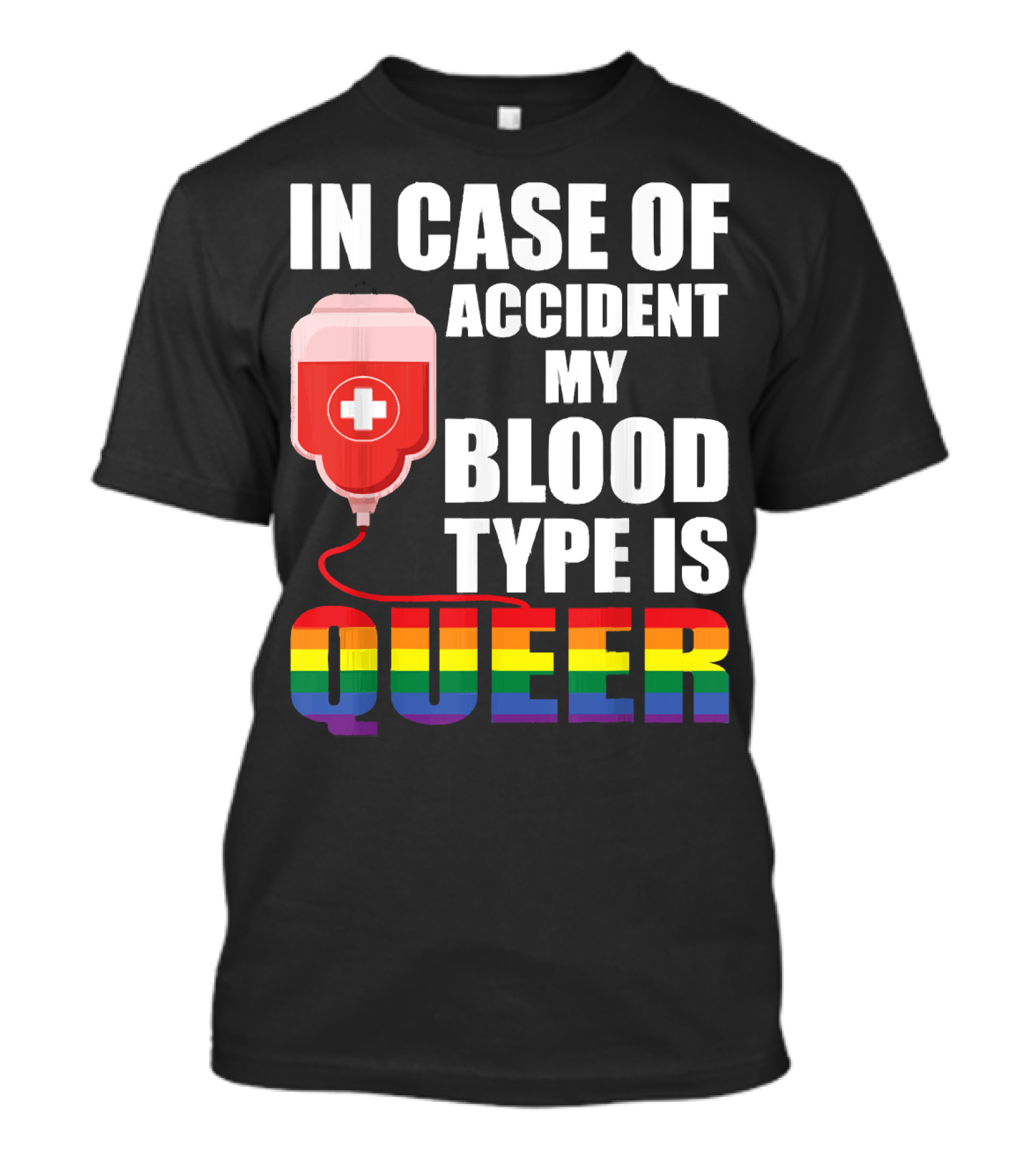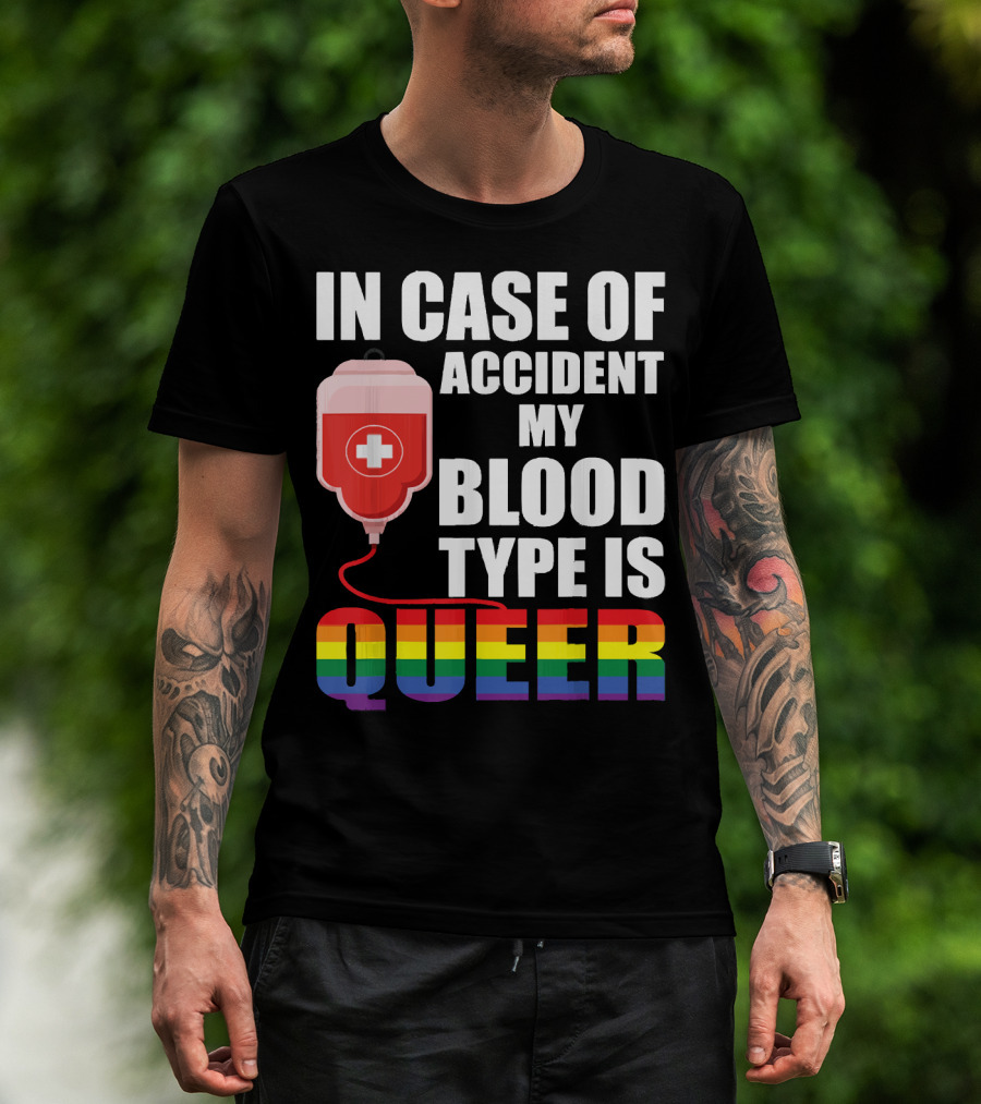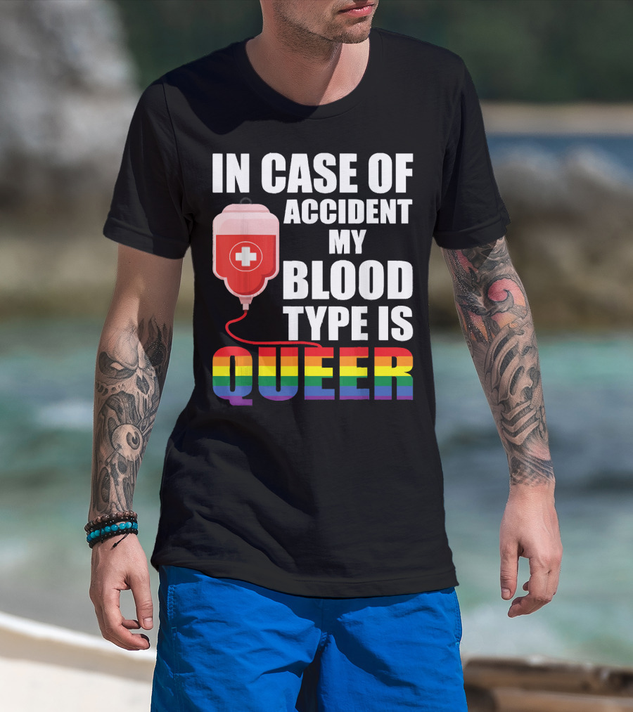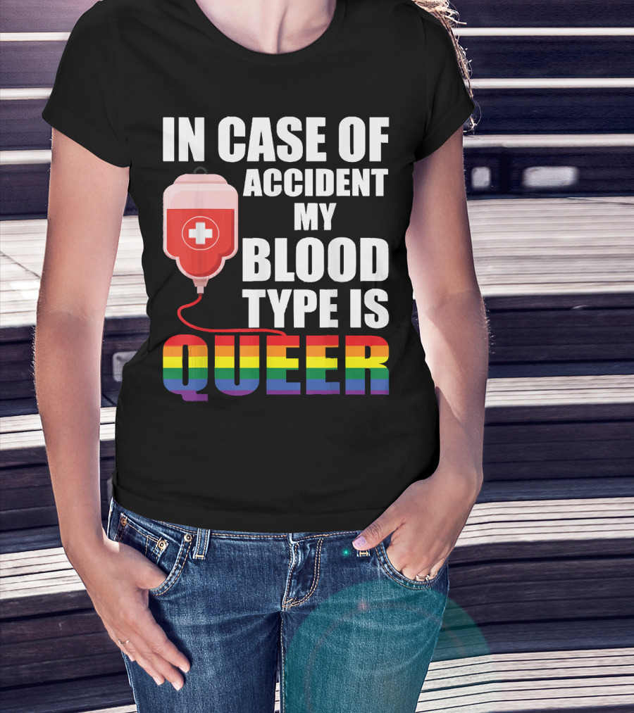 IN CASE OF ACCIDENT MY BLOOD TYPE IS QUEER Rainbow Pride Colors T-Shirt