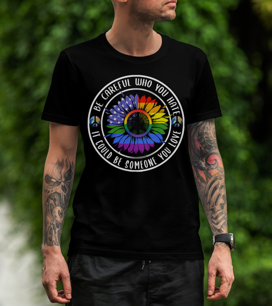 Peace Pride Circle Be Careful Who You Hate It Could Be Someone You Love Flower With Rainbow And Peace Symbols T-Shirt