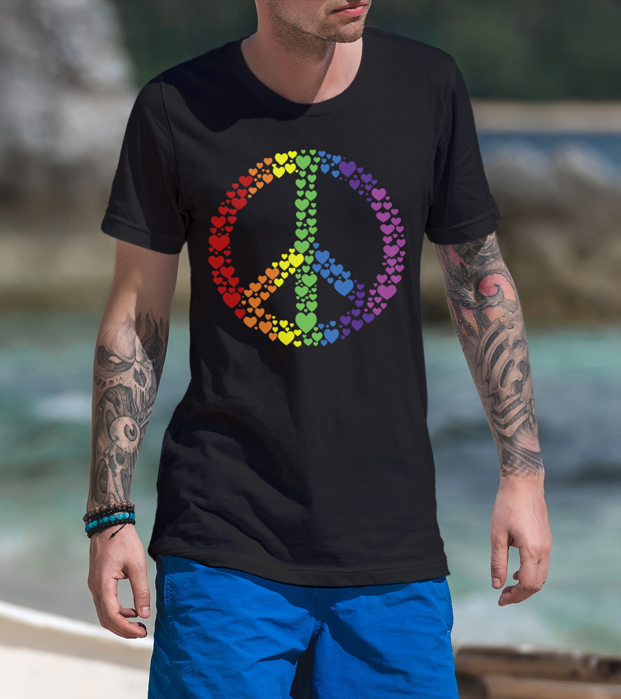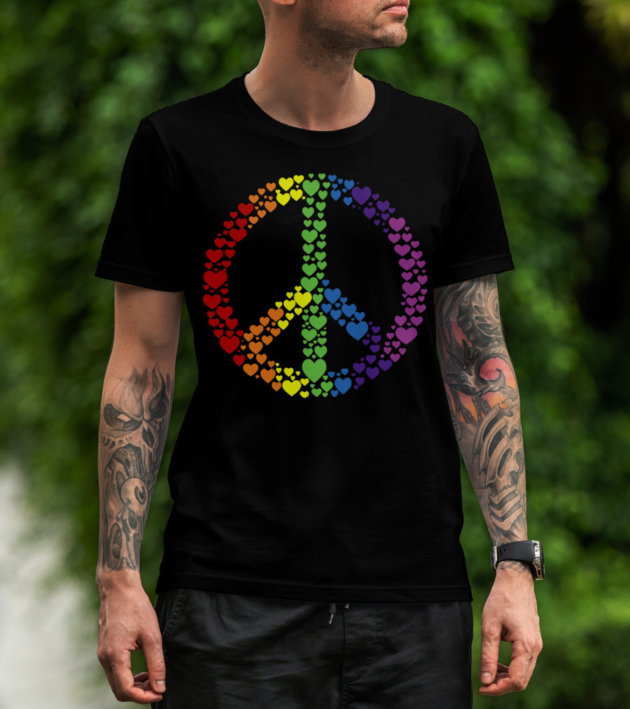 Peace Sign Made Of Rainbow Hearts T-Shirt
