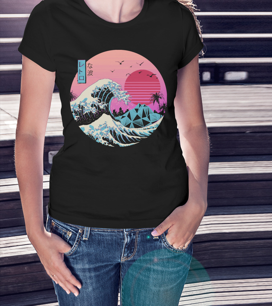Retro Wave: The Great Sunset Surf With Palm Trees And Geometric Mountains T-Shirt