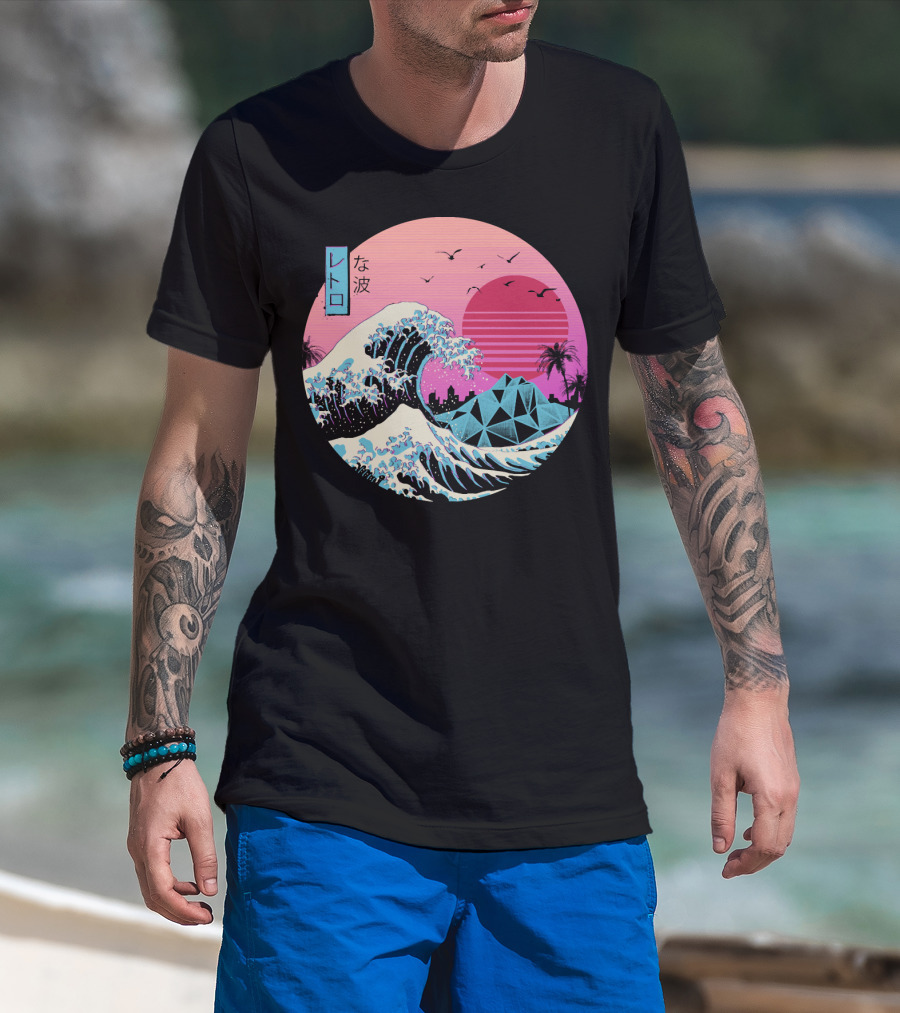 The Retro Wave: The Great Sunset Surf with Palm Trees and Geometric Mountains T-shirt is designed for everyday wear and a consistent fit. Fabric is pre-shrunk ring-spun cotton with durable stitching. See the size chart below for exact measurements.