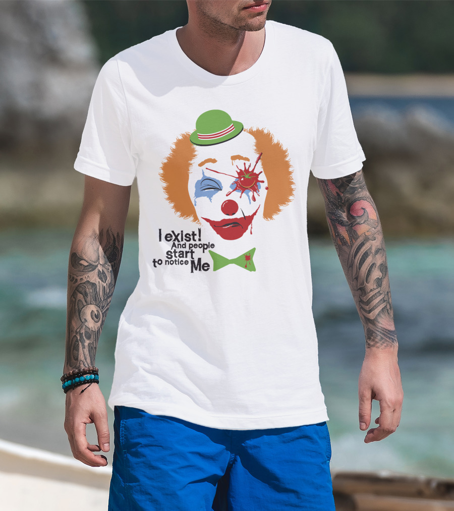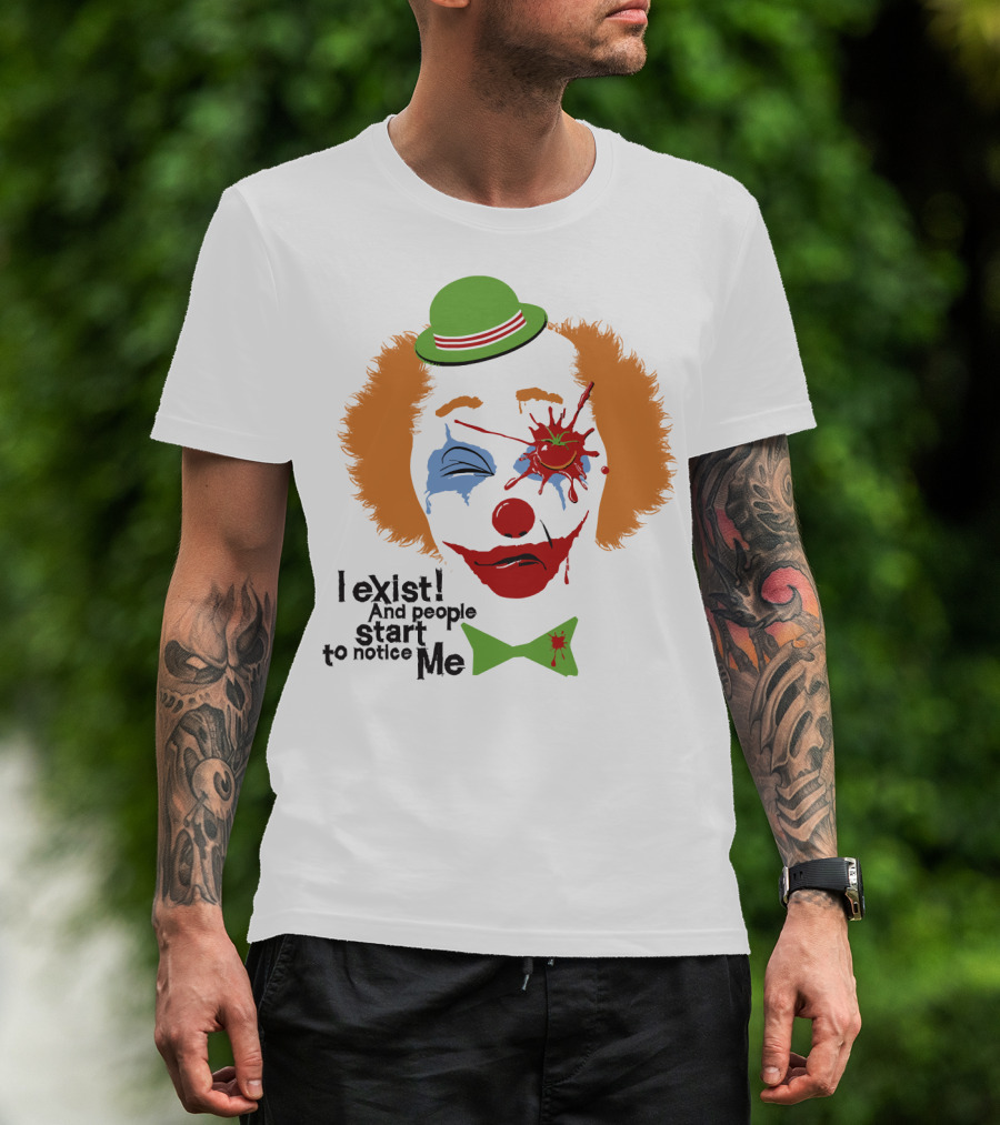 I Exist And People Start To Notice Me Clown Face With Splattered Tomato Green Hat T-Shirt