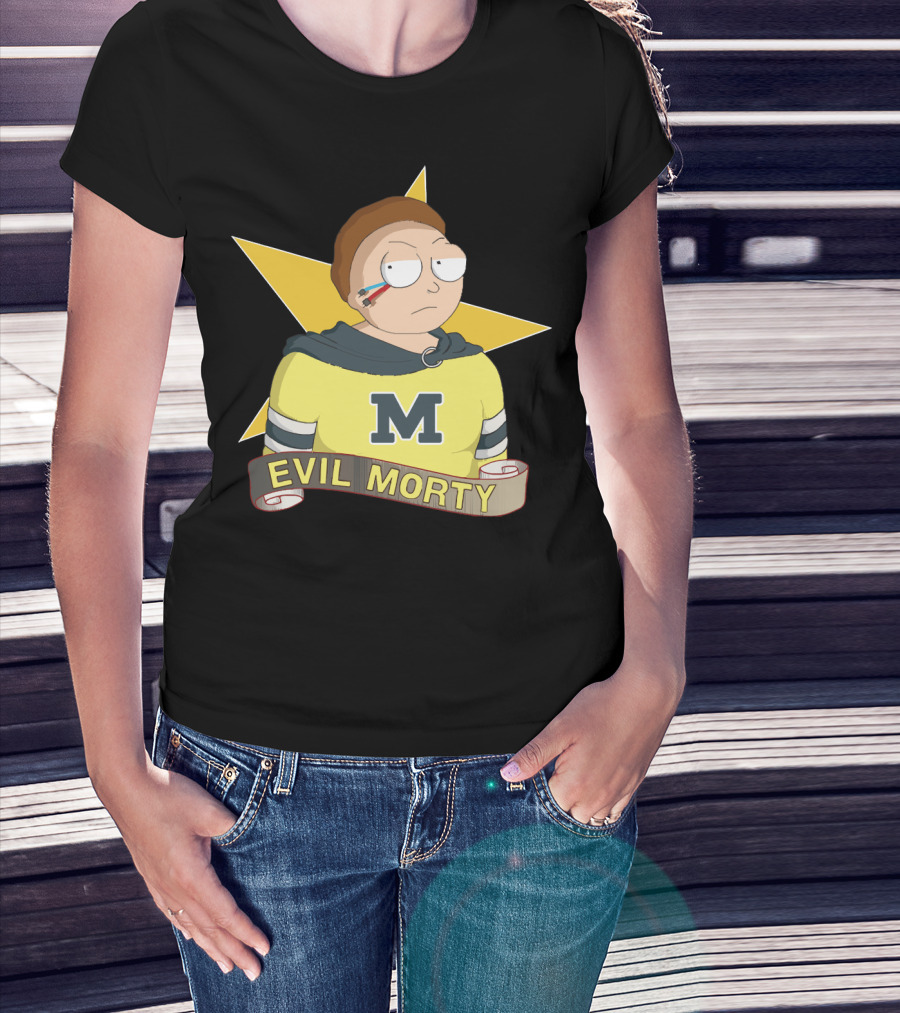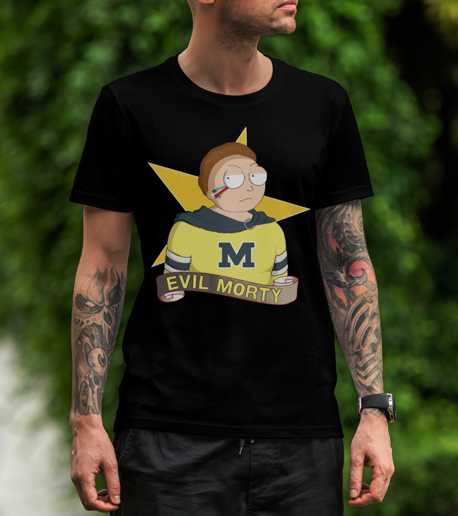 Evil Morty M Star Patch And Scroll Banner T-Shirt