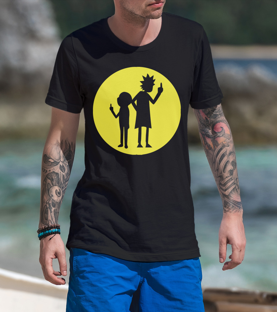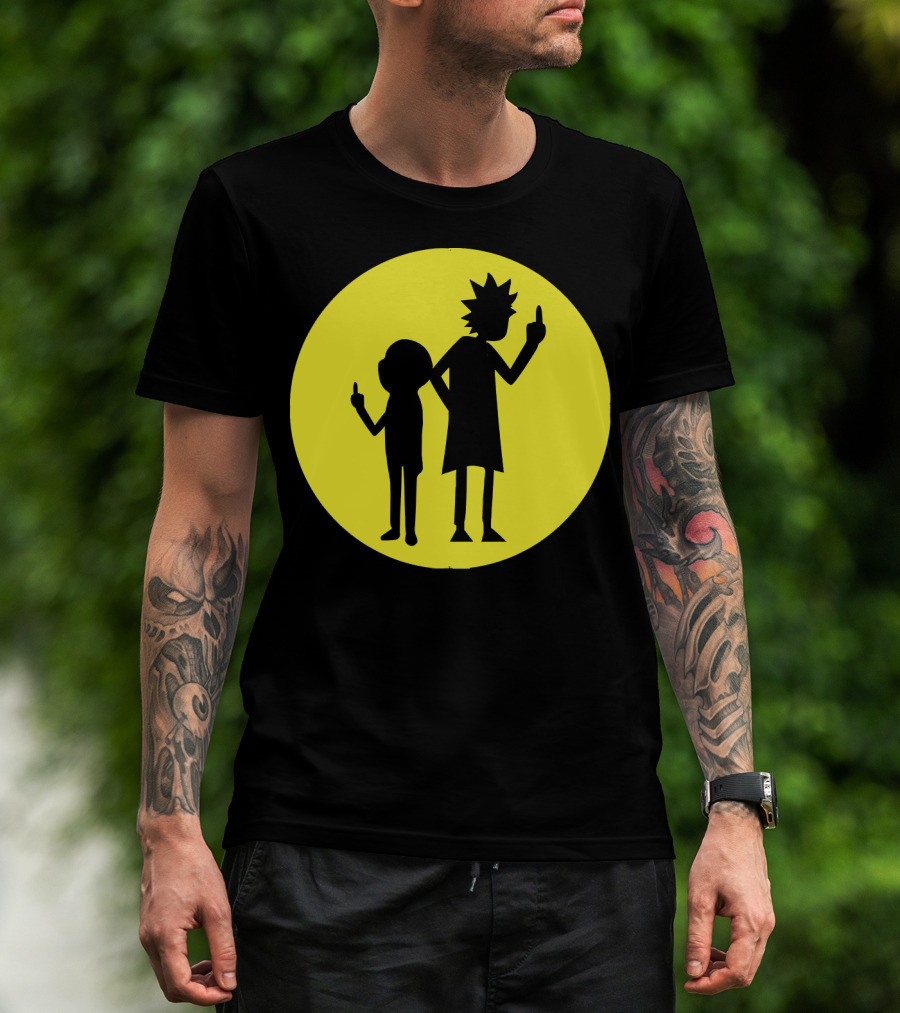 Rick And Morty Silhouette Circle Middle Finger T-Shirt