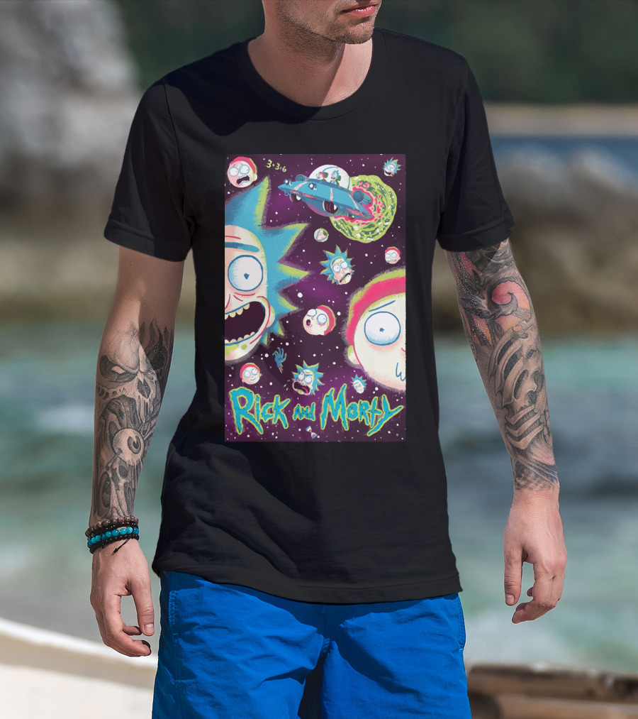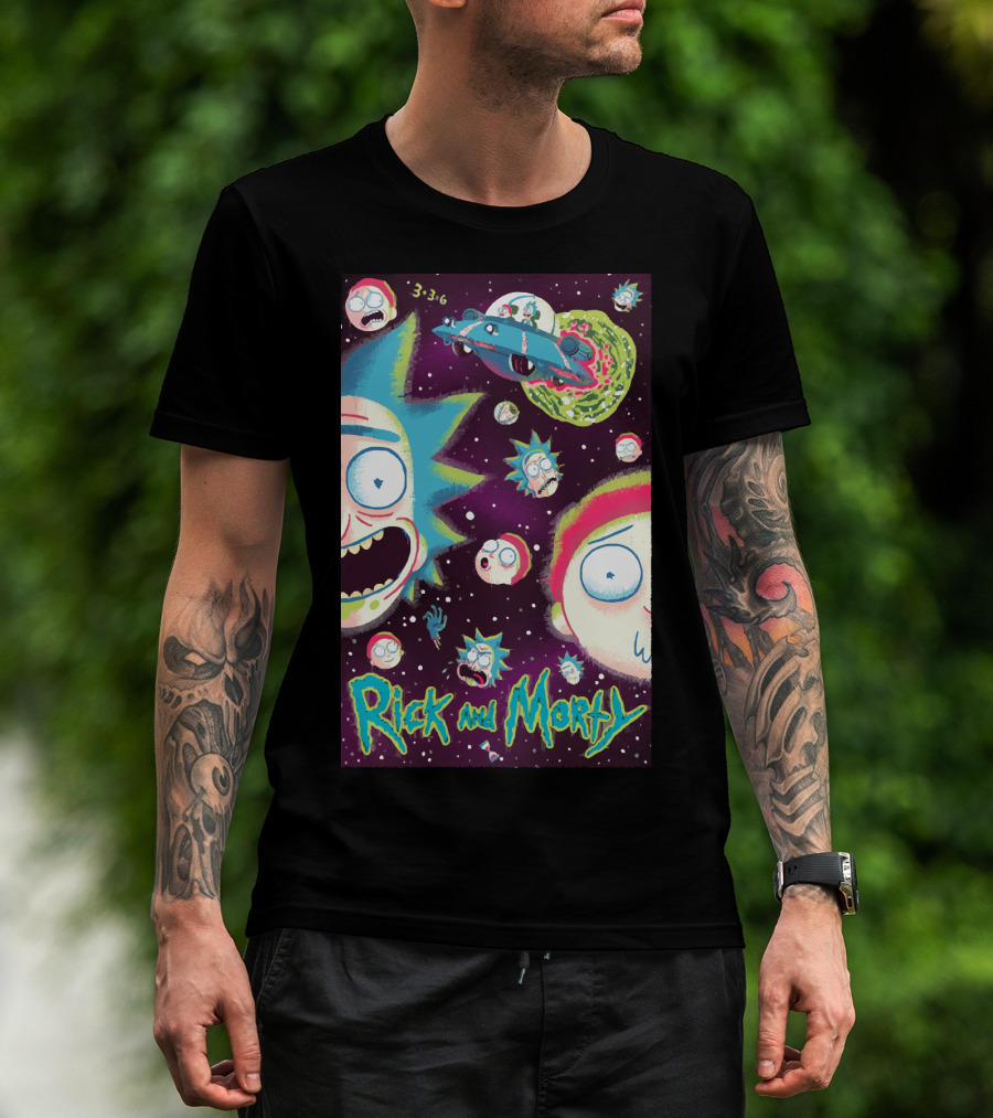 Rick And Morty Galaxy Adventure Cartoon Spaceship Outer Space 3-3-6 T-Shirt