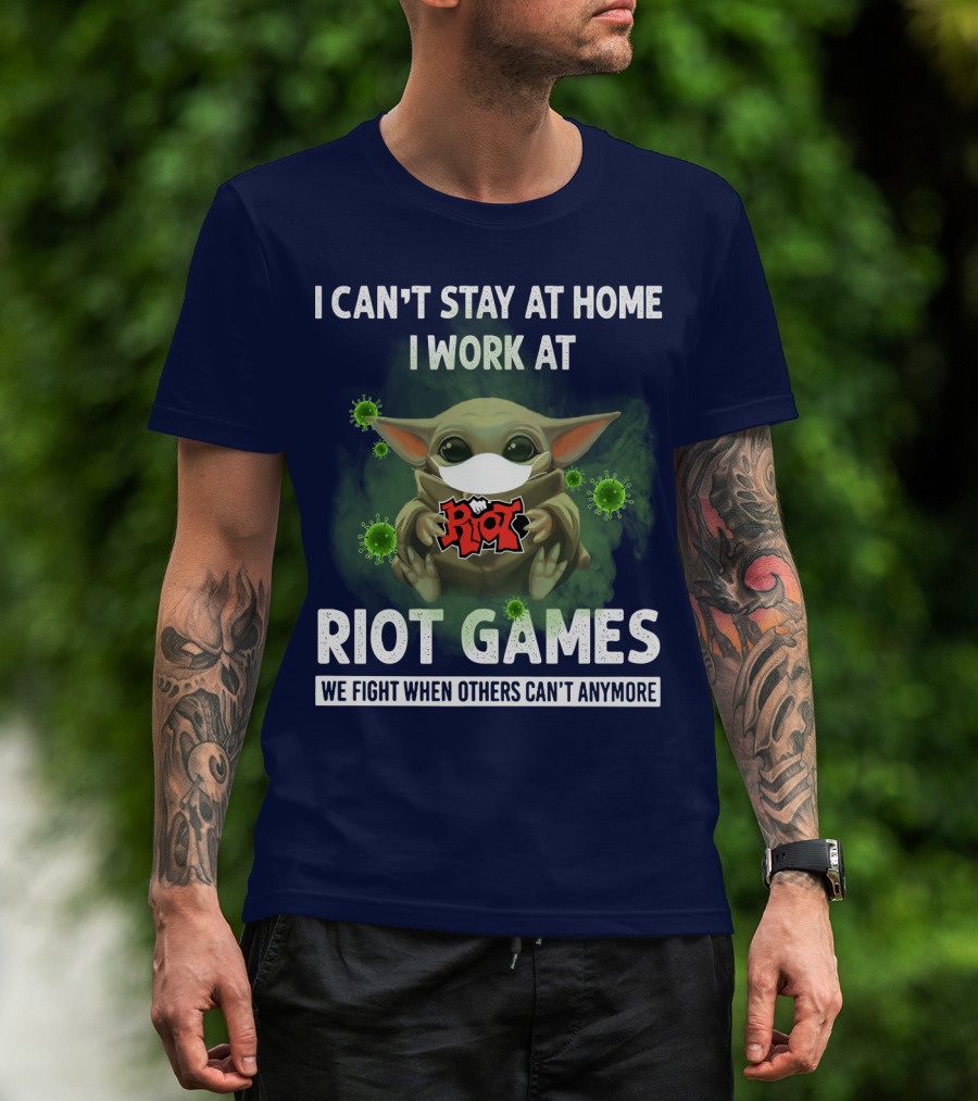 The I CAN'T STAY AT HOME I WORK AT RIOT GAMES WE FIGHT WHEN OTHERS CAN'T ANYMORE T-shirt is designed for everyday wear and a consistent fit. Fabric is pre-shrunk ring-spun cotton with durable stitching. See the size chart below for exact measurements.
