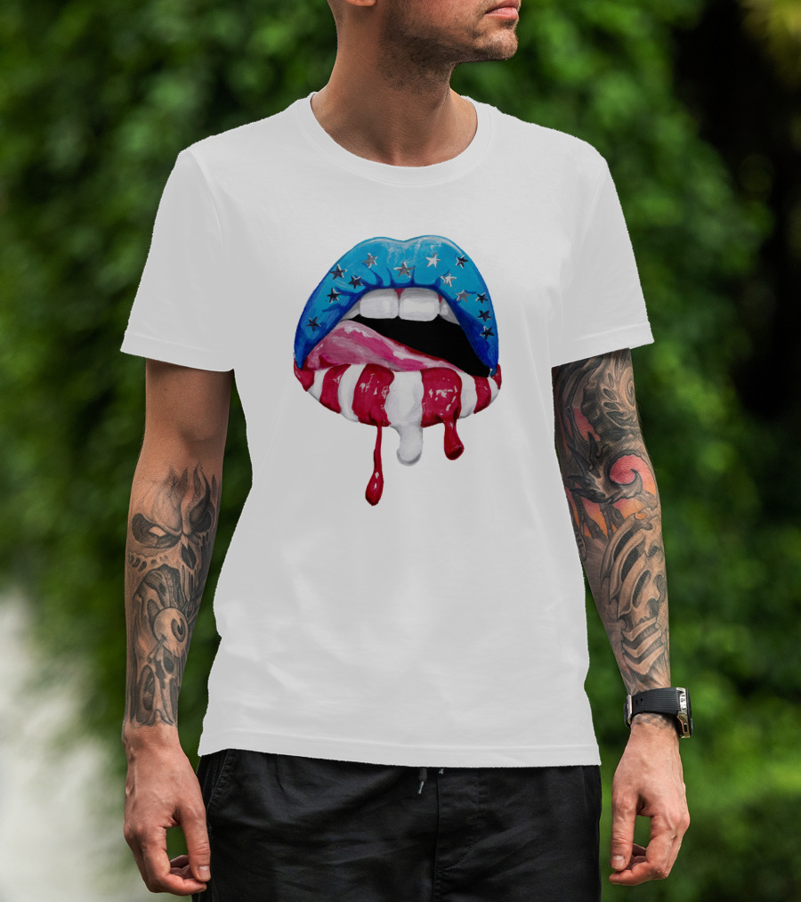'Merica Lips Stars And Stripes USA Flag T-Shirt