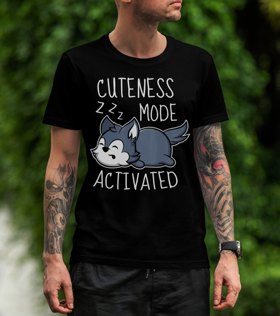The Cuteness Mode Activated Cute Wolf Kid Sleeping T-shirt is designed for everyday wear and a consistent fit. Fabric is pre-shrunk ring-spun cotton with durable stitching. See the size chart below for exact measurements.