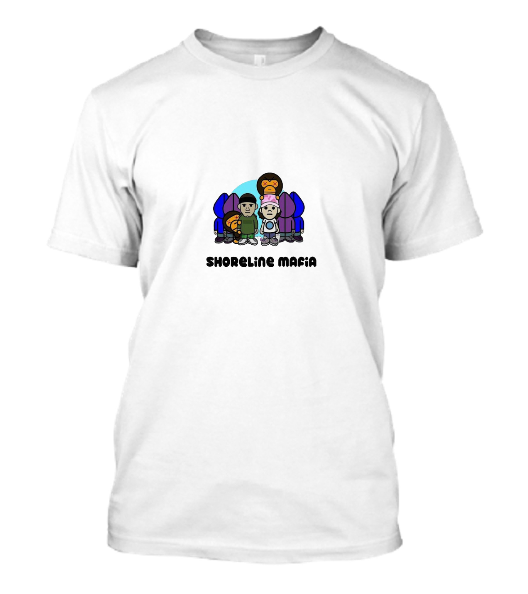 The Shoreline Mafia Cartoon Characters Group Image T-shirt is designed for everyday wear and a consistent fit. Fabric is pre-shrunk ring-spun cotton with durable stitching. See the size chart below for exact measurements.