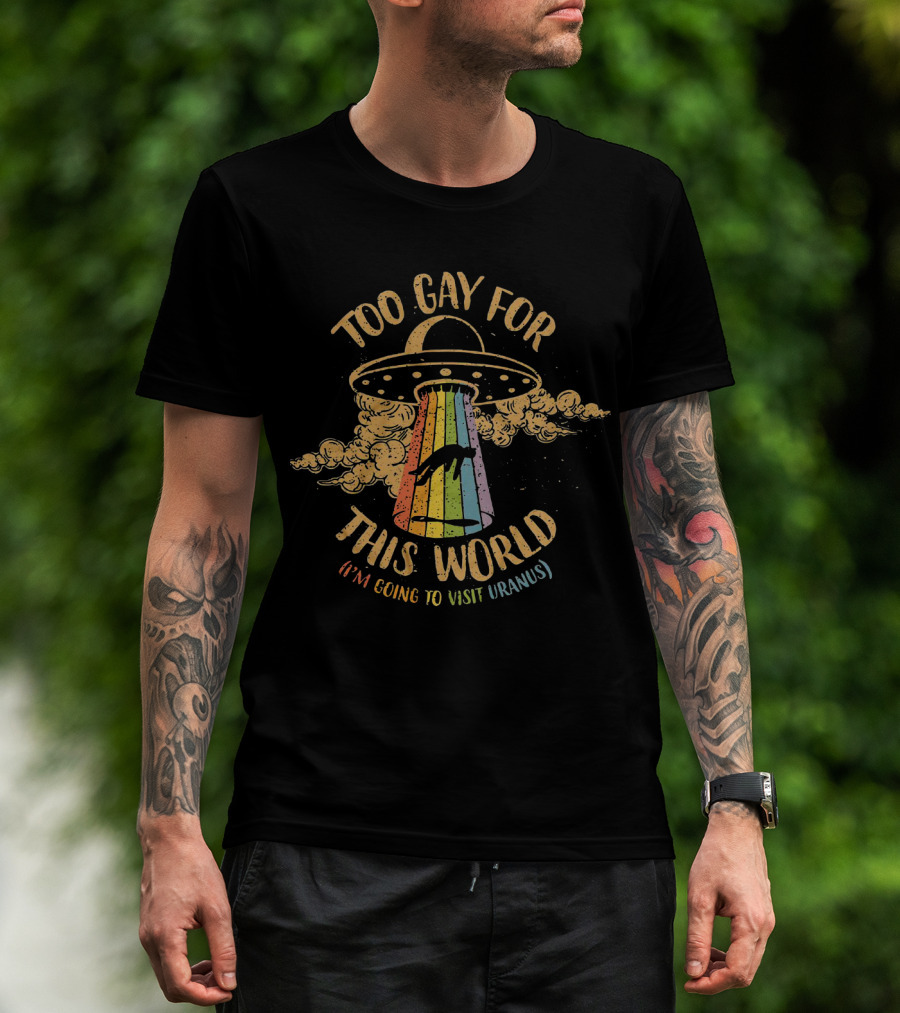 Too Gay For This World UFO Visit Uranus Rainbow Beam T-Shirt
