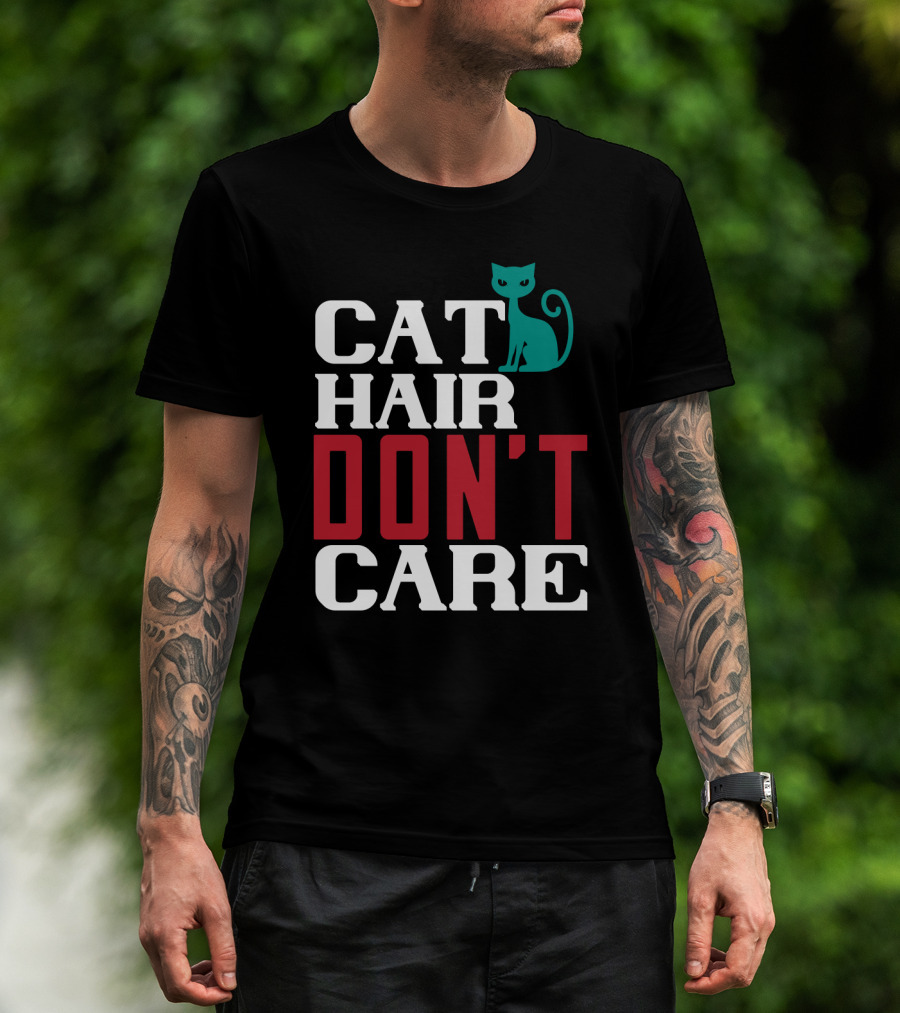 The Cat Hair Don't Care Cat T-shirt is designed for everyday wear and a consistent fit. Fabric is pre-shrunk ring-spun cotton with durable stitching. See the size chart below for exact measurements.