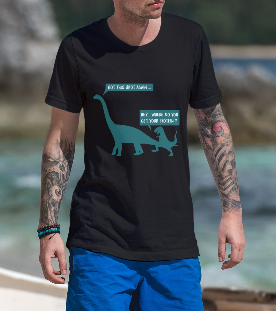 Not This Idiot Again Hey Where Do You Get Your Protein Dinosaurs T-Shirt