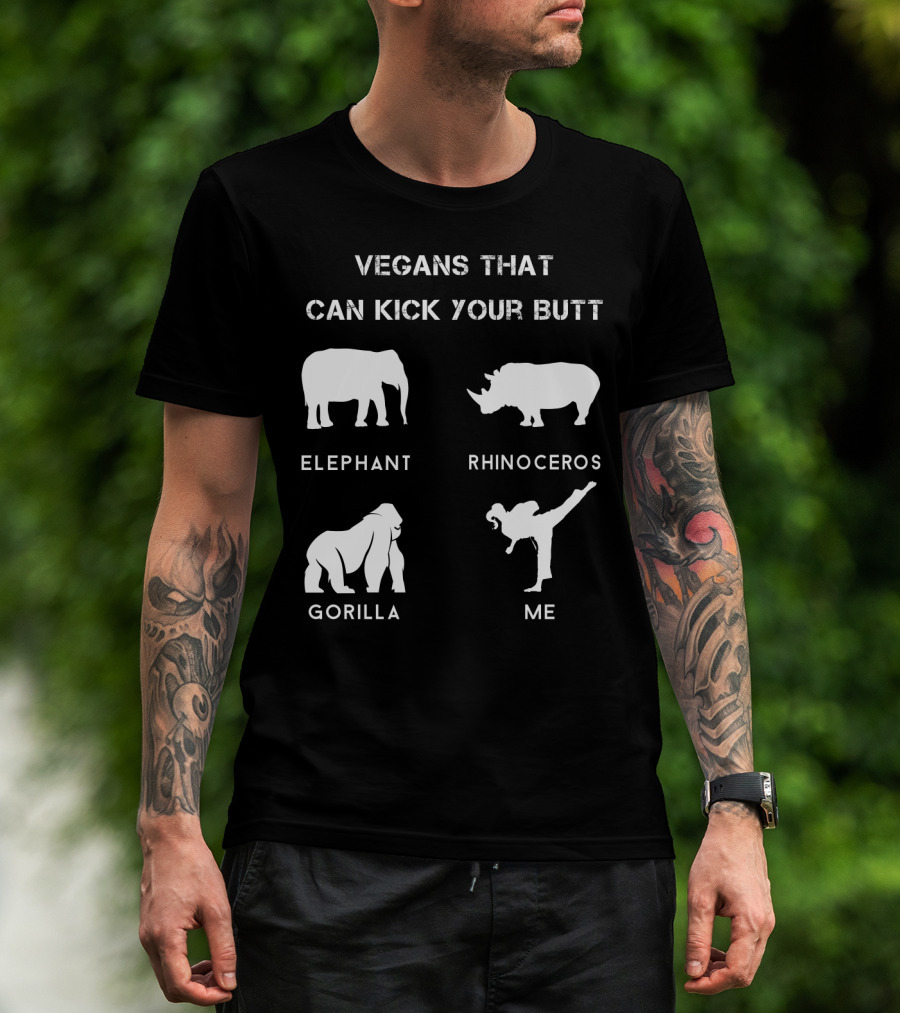 VEGANS THAT CAN KICK YOUR BUTT ELEPHANT RHINOCEROS GORILLA ME T-Shirt