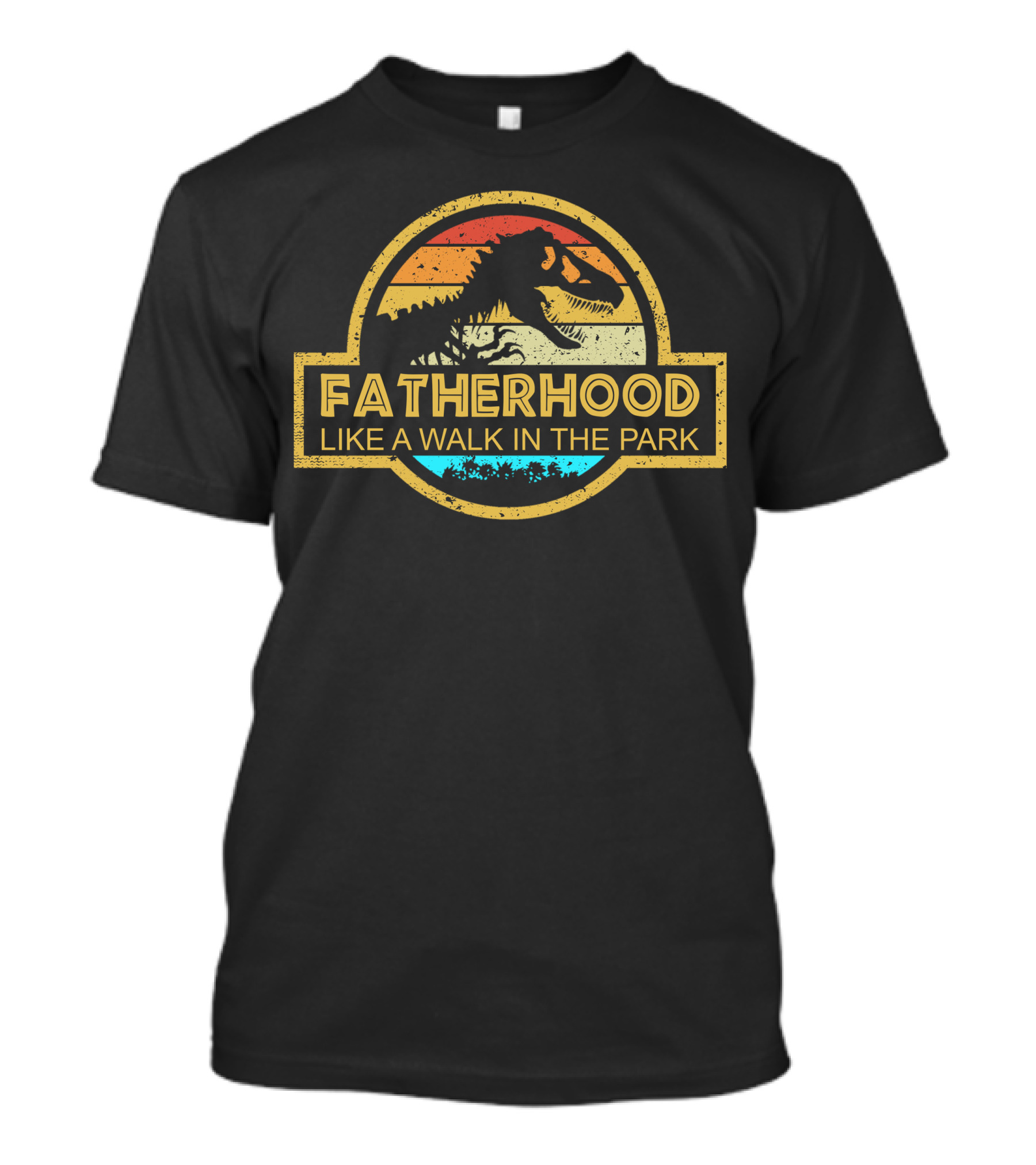 The Fatherhood Like a Walk in the Park Dinosaur Retro Emblem T-shirt is designed for everyday wear and a consistent fit. Fabric is pre-shrunk ring-spun cotton with durable stitching. See the size chart below for exact measurements.