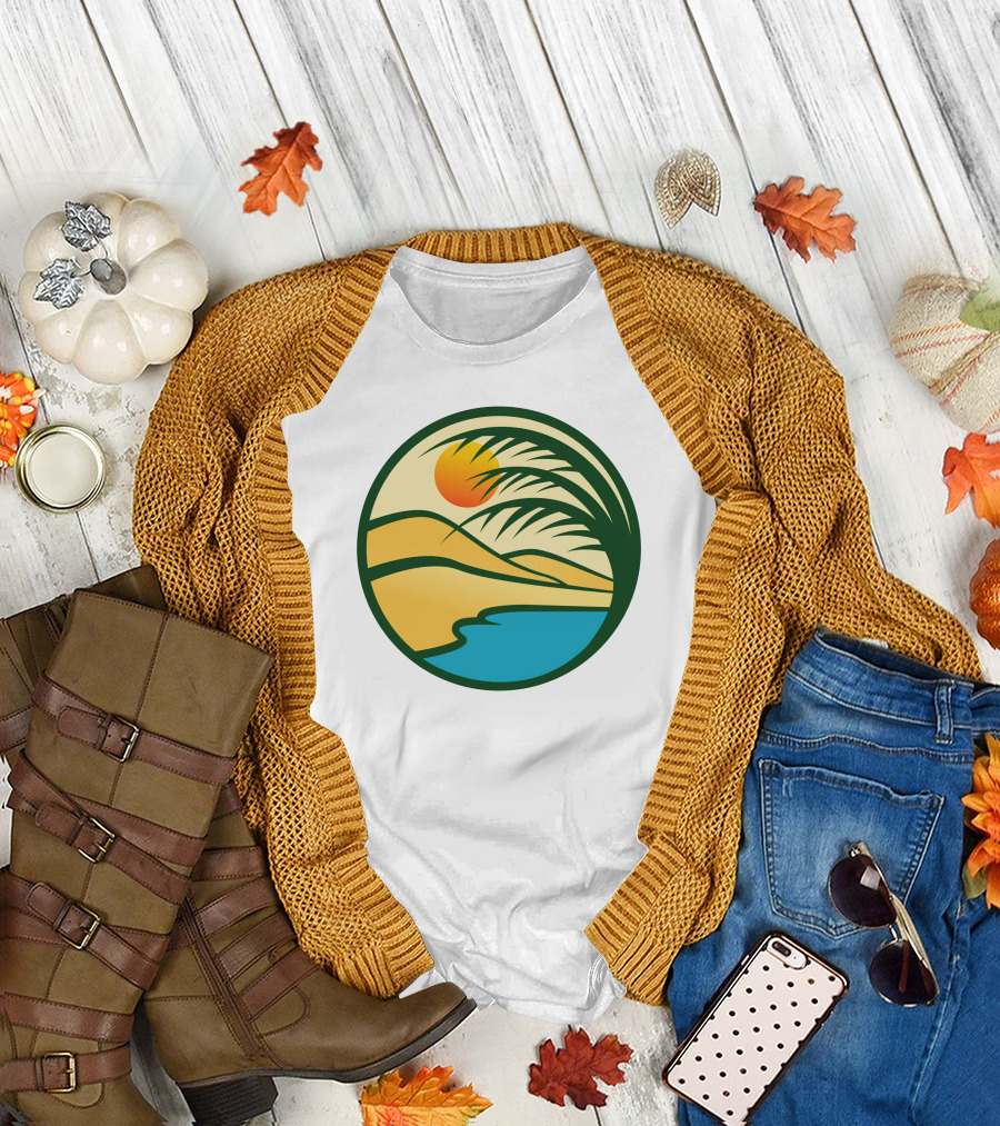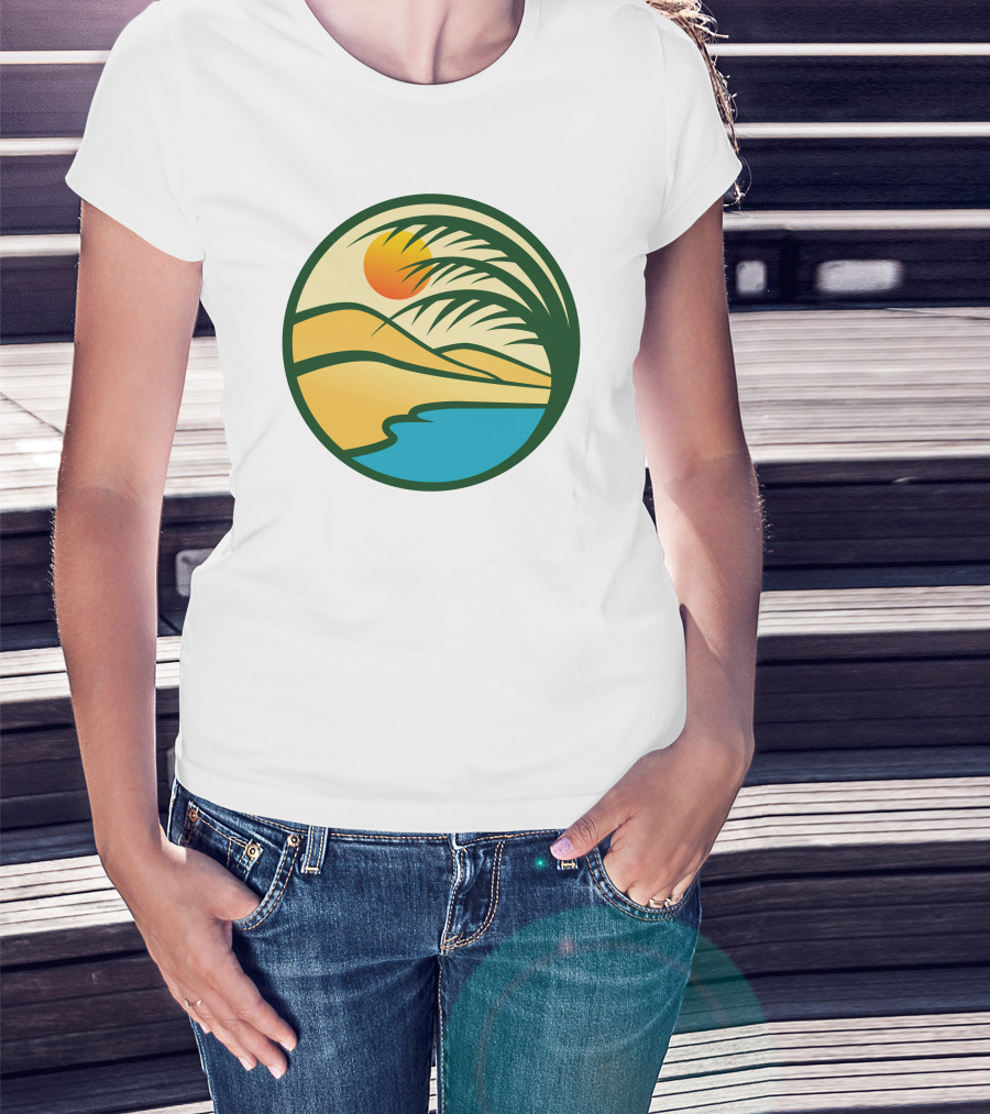 The Oasis Desert Sunset with Palm and Water Scene T-shirt is designed for everyday wear and a consistent fit. Fabric is pre-shrunk ring-spun cotton with durable stitching. See the size chart below for exact measurements.