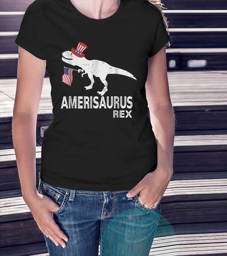 Amerisaurus Rex Patriotic Dinosaur With Uncle Sam Hat And American Flag T-Shirt