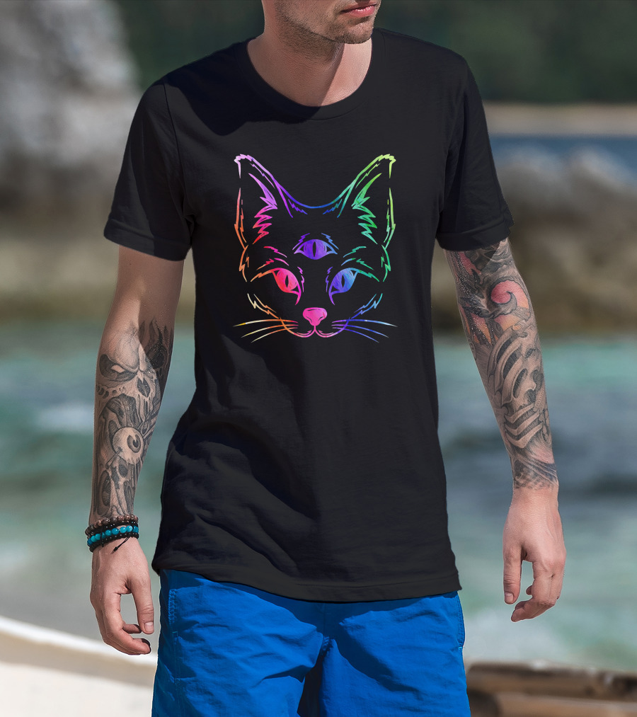Awakened Cat Third Eye Rainbow Psychedelic Aesthetic T-Shirt