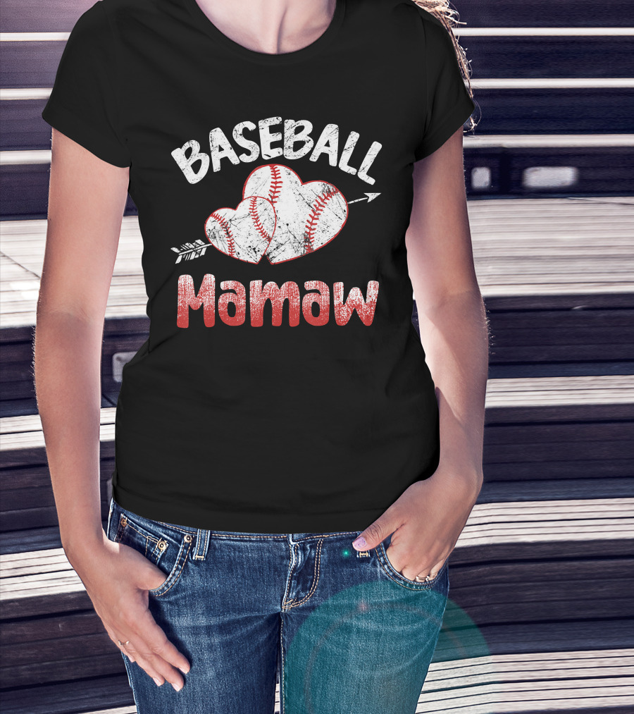 Baseball Mamaw Heart Arrow Baseball Stitching T-Shirt