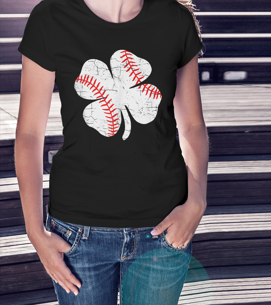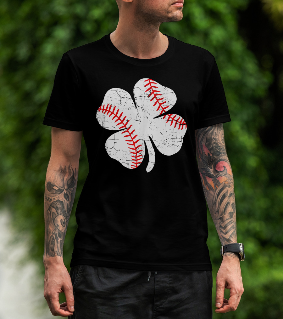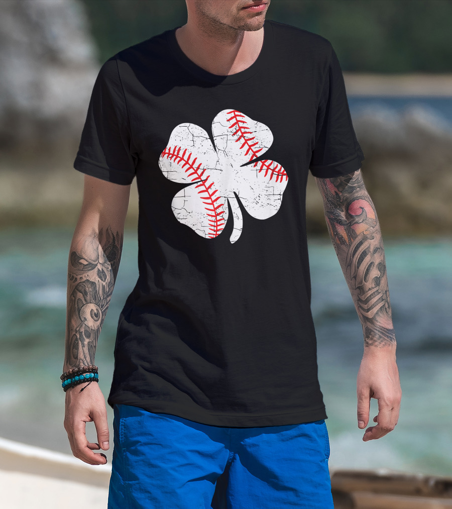 Baseball Patricks Day Boys Me Shamrock Stitch T-Shirt
