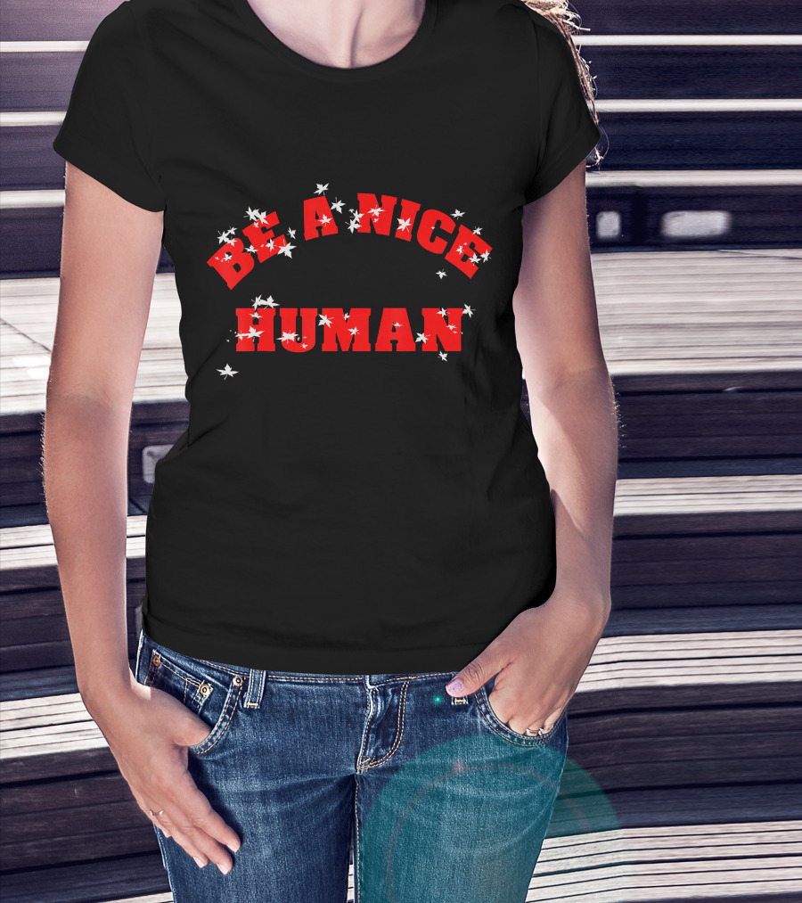 Be A Nice Human Vintage Love Distressed Red Text With Stars T-Shirt