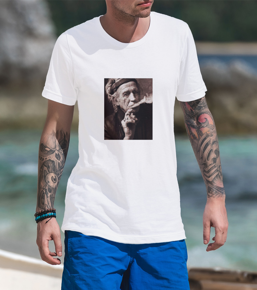 The Kanye West Never Heard of Her Keith Richards Smoking Image T-shirt is designed for everyday wear and a consistent fit. Fabric is pre-shrunk ring-spun cotton with durable stitching. See the size chart below for exact measurements.