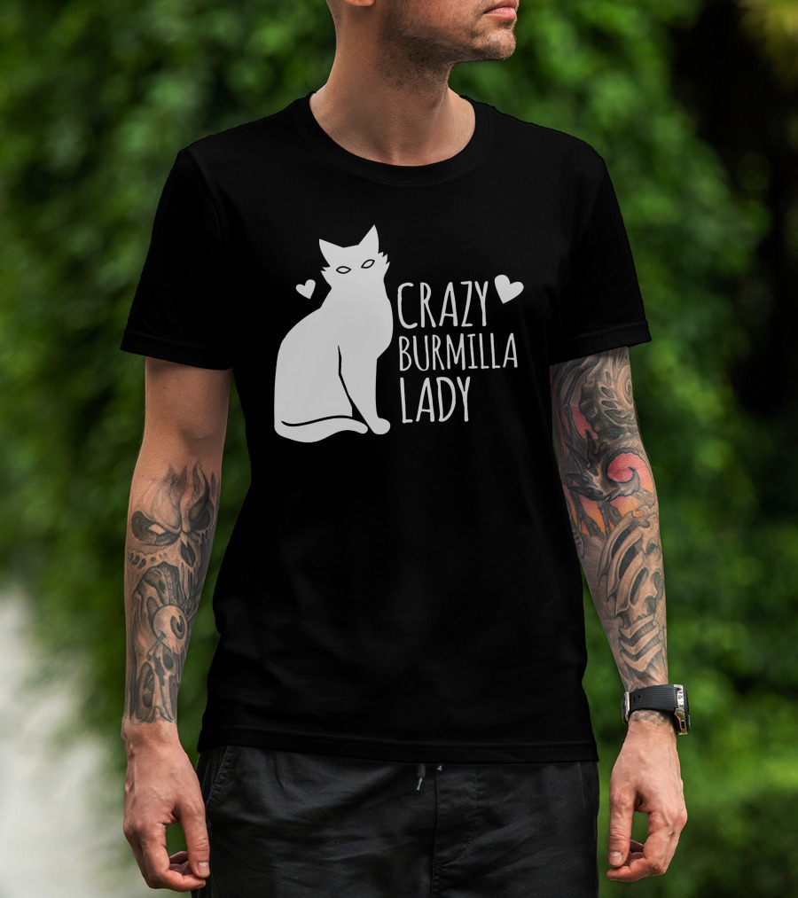 The CRAZY BURMILLA LADY T-shirt is designed for everyday wear and a consistent fit. Fabric is pre-shrunk ring-spun cotton with durable stitching. See the size chart below for exact measurements.